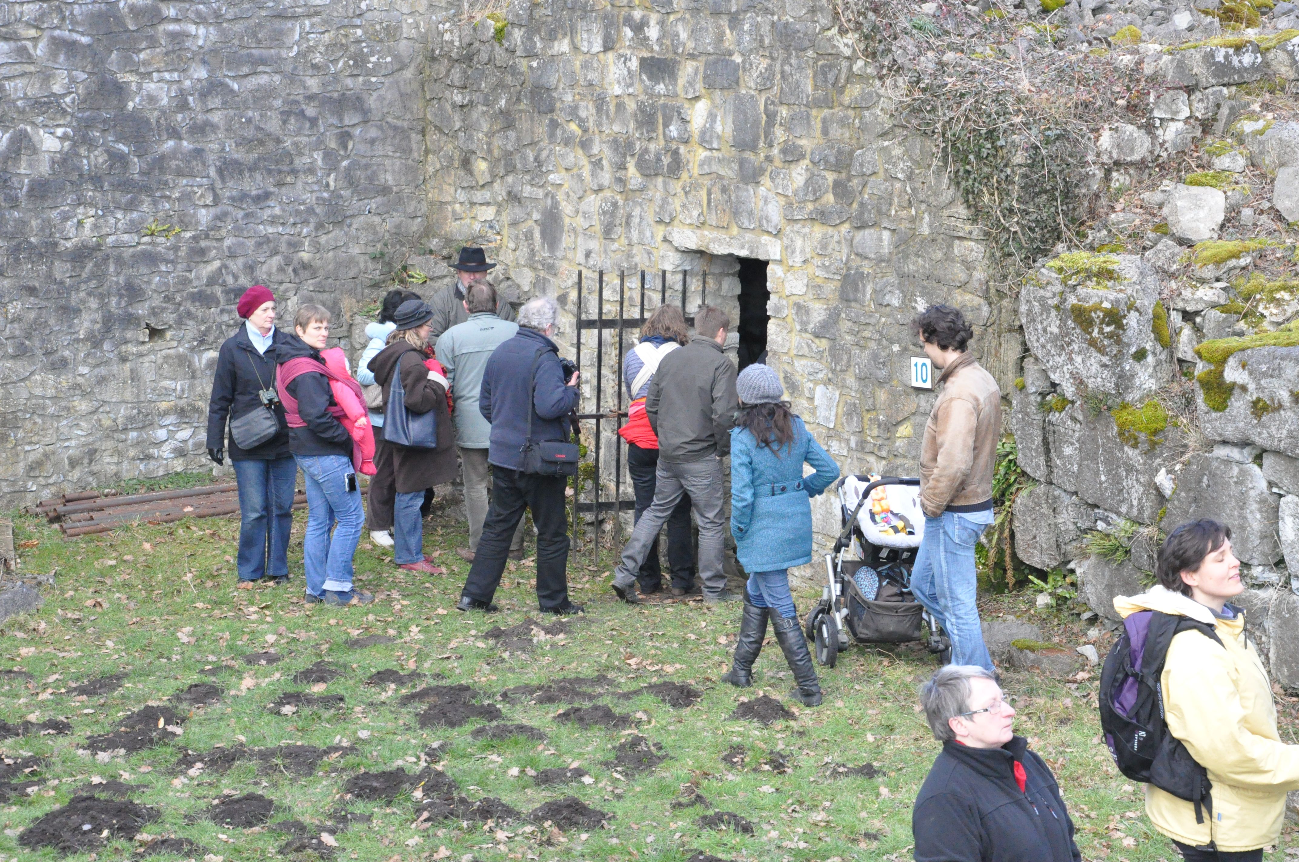 Au milieu de la semaine passée, la MPMM avait déjà enregistré de nombreuses inscriptions. La météo aidant, ce furent finalement plus de 120 personnes qui eurent ainsi l’occasion de découvrir (et pour beaucoup de re-découvrir) ce site classé Patrimoine Exceptionnel de Wallonie. Vu le succès, la MPMM avait fait appel à 3 guides qui, de 15h à près de 18h, ont piloté quatre groupes d’une trentaine de personnes (soit plus de 120 personnes) sur le site de Poilvache. Les visiteurs -dont beaucoup de familles avec leurs enfants- ont ainsi fait connaissance avec le contexte historique dans lequel la forteresse de Poilvache s’est développée au Moyen-Âge, avec les techniques de construction de l’époque et avec le métier d’archéologue au 21ème siècle.