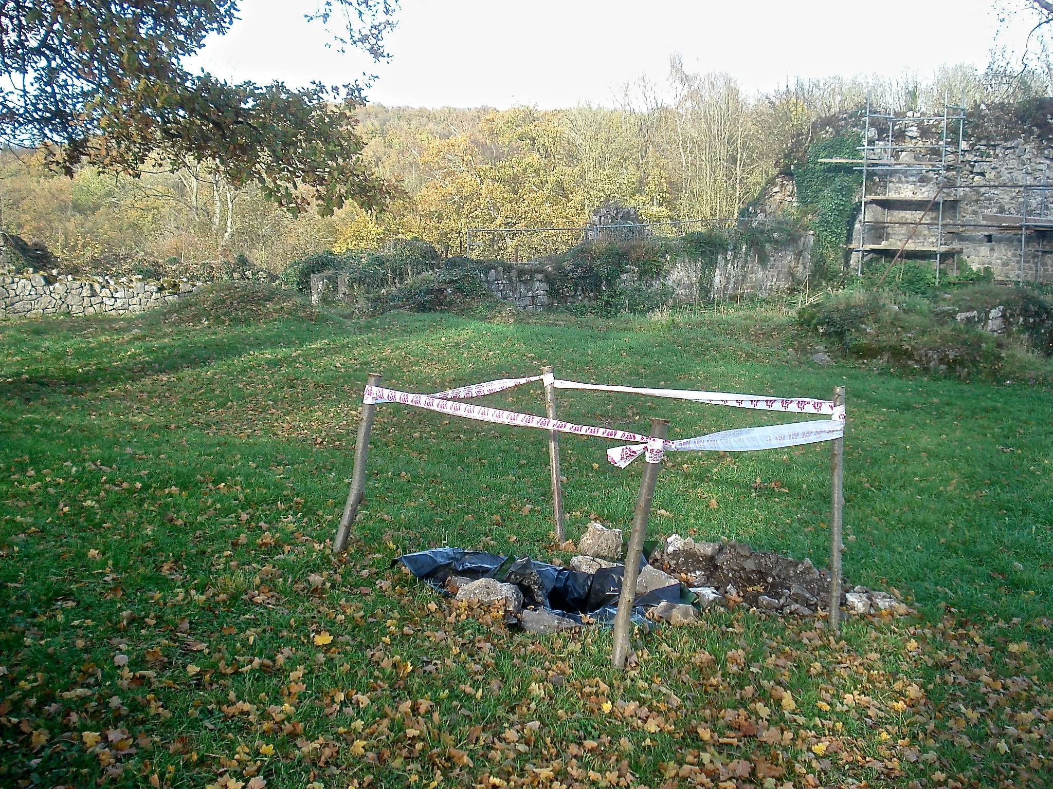 Les visiteurs de fin de saison sur le site de Poilvache auront découvert avec un certain étonnement peut-être ce qui pourrait être pris pour des zones de fouilles et d’exploration. A plusieurs endroits sur le site, des trous ont été creusés, le fond des cavités est soigneusement protégé par un film étanche et les secteurs concernés sont protégés par des rubalises-souvenirs de l’Année de l’Archéologie. La Direction de l’Archéologie de la Région wallonne aurait-elle repris ses fouilles à Poilvache ?