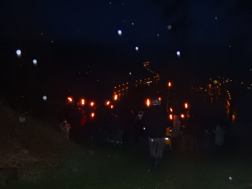 Le samedi 10 février dernier, une trentaine de membres de l’ASBL en ordre de cotisation ont répondu à l’invitation et ont participé à une visite guidée du site à la lumière des flambeaux. Les ruines étaient éclairées par des bougies aux points stratégiques. La visite était patrimoniale et un peu philosophique. c’est donc dans une ambiance chaleureuse et féérique que les cotisants ont pu redécouvrir les ruines sous un nouveau … jour. Au crépuscule, quelques informations ont été données sur le noir et la nuit au Moyen Age. Lancée vers 18h, sous un petit crachin, la promenade s’est faite au bout de quelques pas dans le noir. « Je connais bien le site, mais où suis-je? » avons-nous très vite entendu. Cette expérience fantastique illustrée ici par trois photos fut aussi l’objet d’interrogations philosophiques.