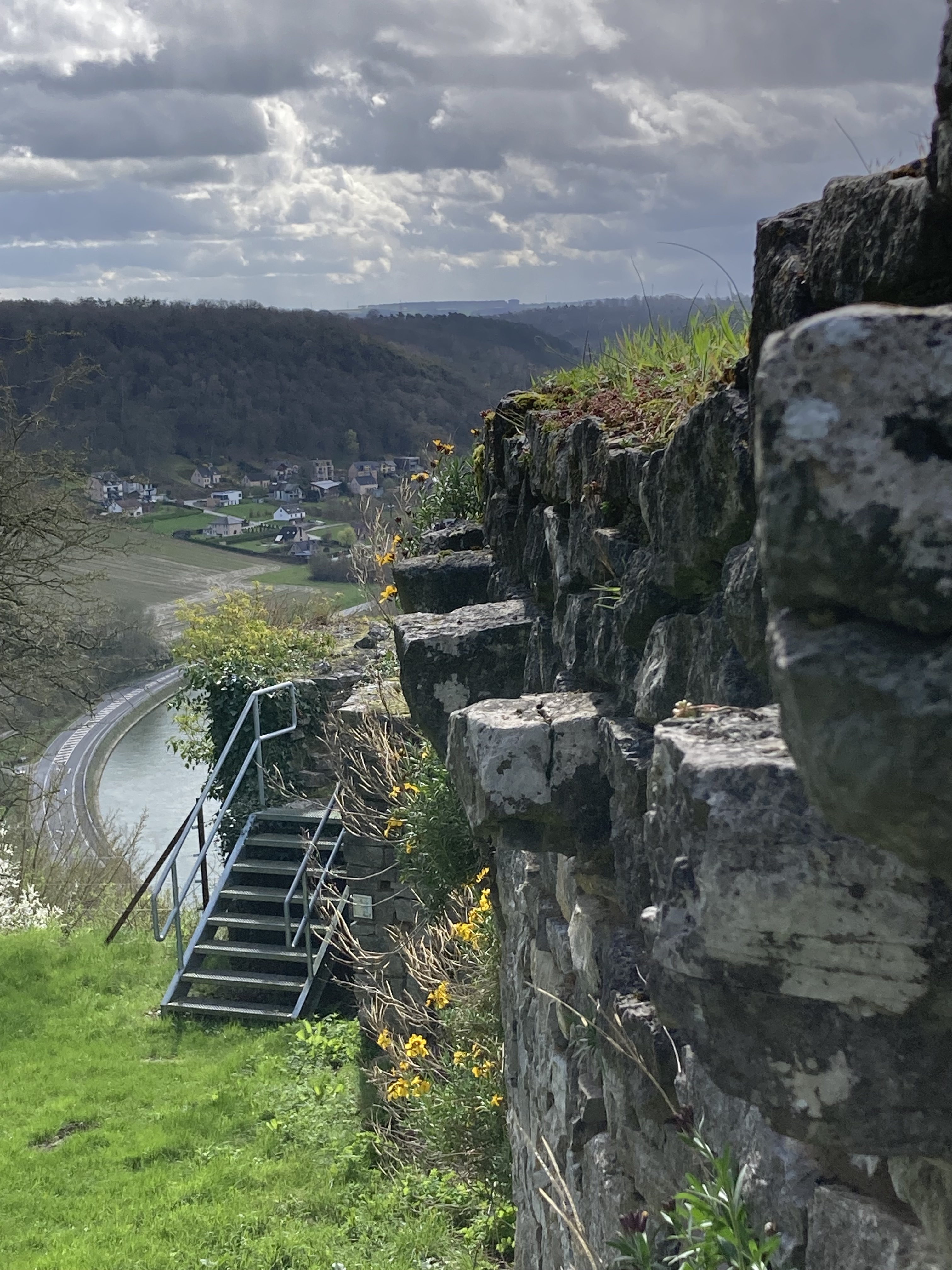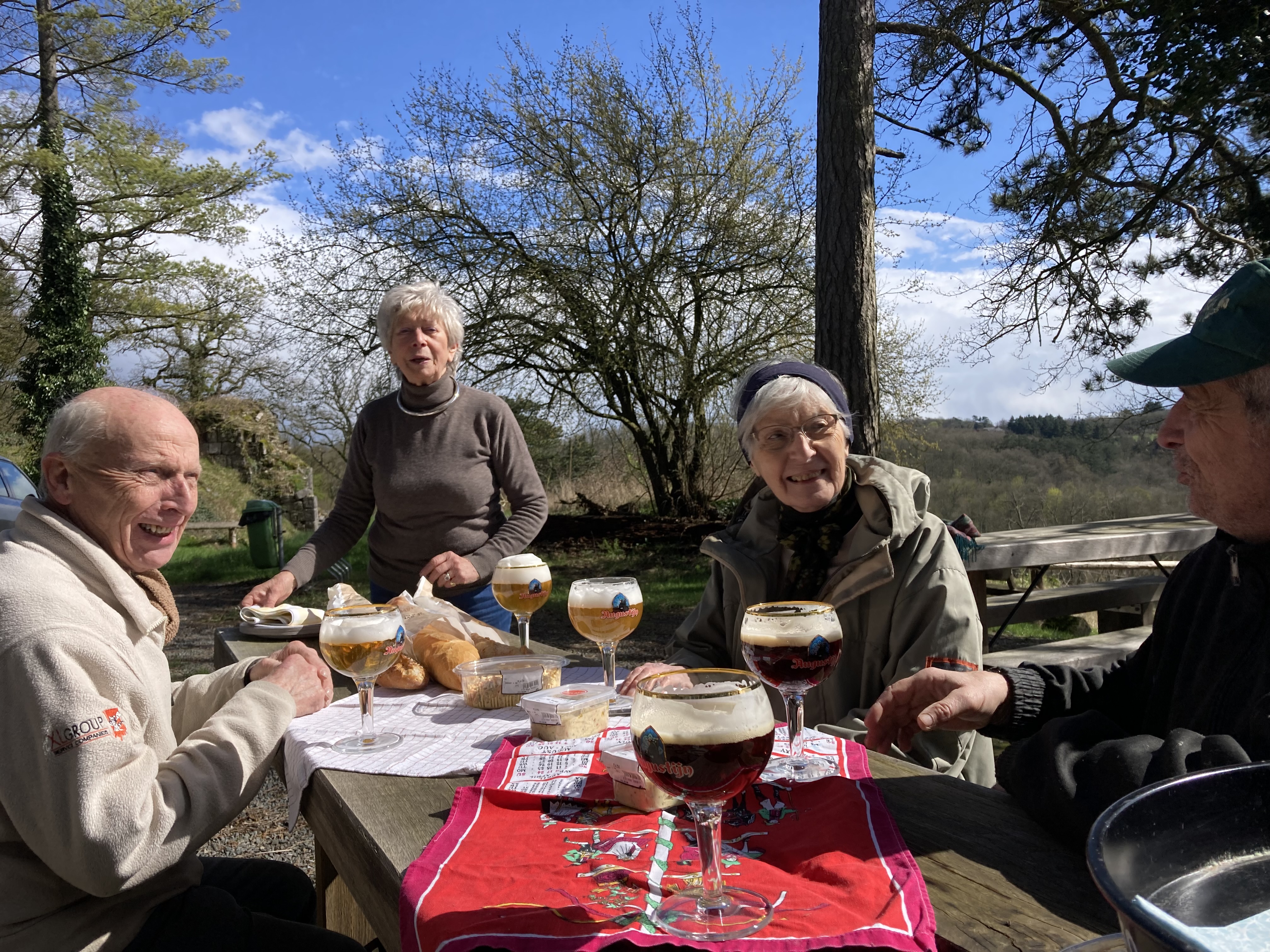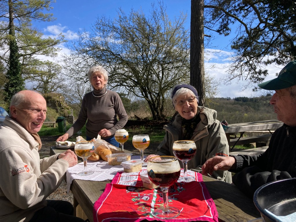 La suite de la journée fut consacrée à divers travaux avec l’accord et la bénédiction de la DNF, comme le désherbage de la terrasse, l’élimination des noisetiers et ronces sur l’intérieur de la courtine Nord du château et de la courtine Ouest, la préparation de la visite des pompiers, le placement de la corde pour protéger les orchidées près du pavillon, une coupe de printemps pour la maison-cave en éliminant le maximum de lierres, nettoyage des 2/3 de l’intérieur de la Tour de l’Ouest tout en gardant les giroflées, élimination des vestiges de feu le drapeau jaune de la Province. Nous avons pu manger au soleil.