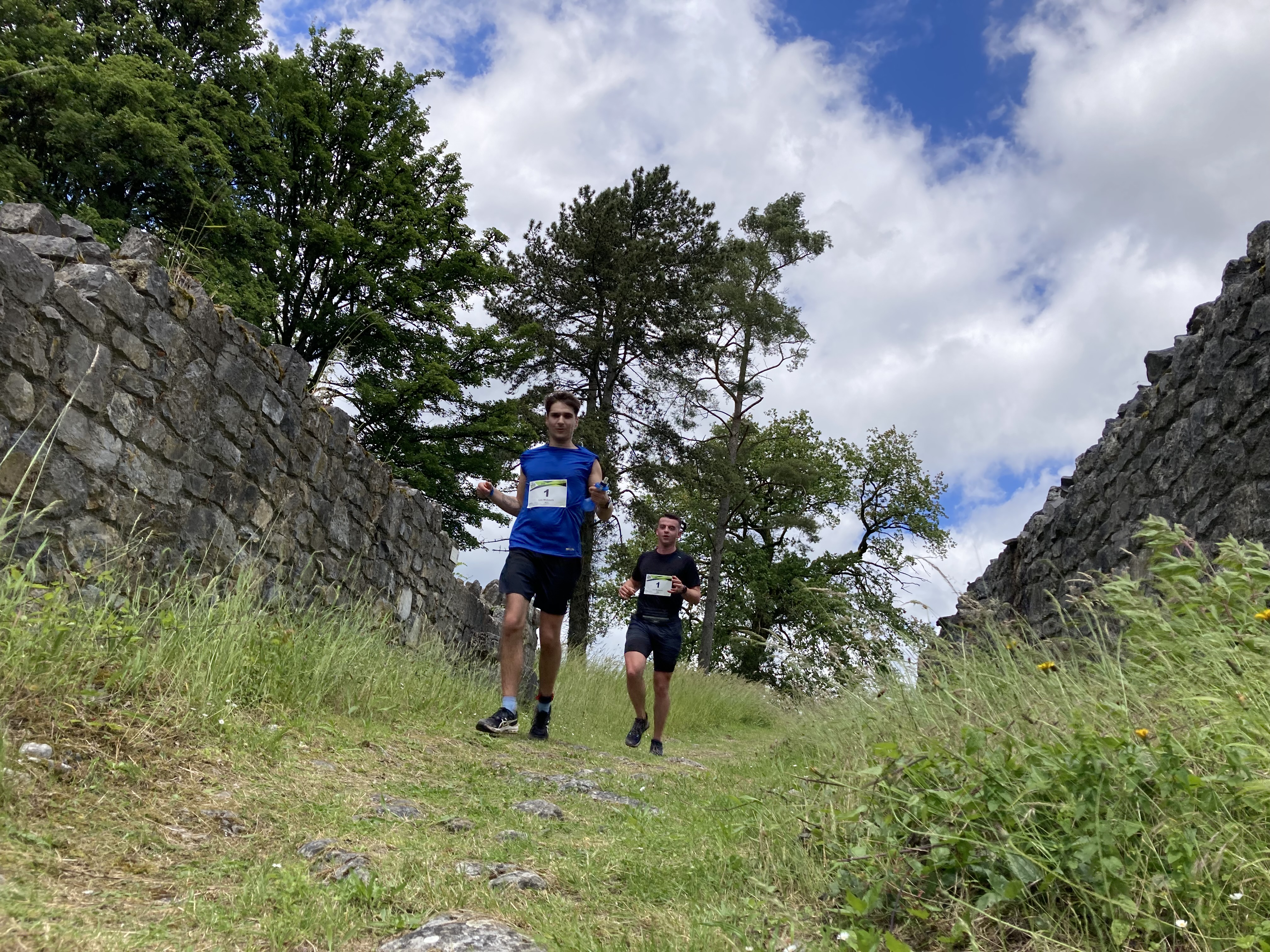 Samedi dernier, le 15 juin, le Raid de la Molignée a, comme annoncé, obtenu l’autorisation exceptionnelle de tracer son parcours de course à pied dans les ruines de Poilvache. Les sportifs sont venus d’Anhée par le halage pour ensuite monter aux ruines par le vallon du Collebert, ce qui a entrainé un allongement sérieux du peloton et un passage à la queue leu-leu dans les ruines. Les plus rapides ont croisés les derniers au niveau de la premier porte du chemin de défilement. Le circuit faisait le tour de la « ville » puis embarquait les téméraires dans le « labyrinthe » du château. Tous se sont émerveillés des lieux et de la maintenance. La DNF avait soigneusement tondu les allées. Les 160 sportifs, en moins de 2h, ont foulé les herbes d’un pied très léger. Les prairies n’ont pas été abimées. Quatre administrateurs, répartis dans le site, veillaient au grain. La nature a ainsi été respectée tout comme les différents murs et structures castrales de Méraude, « patrimoine exceptionnel » de Wallonie.