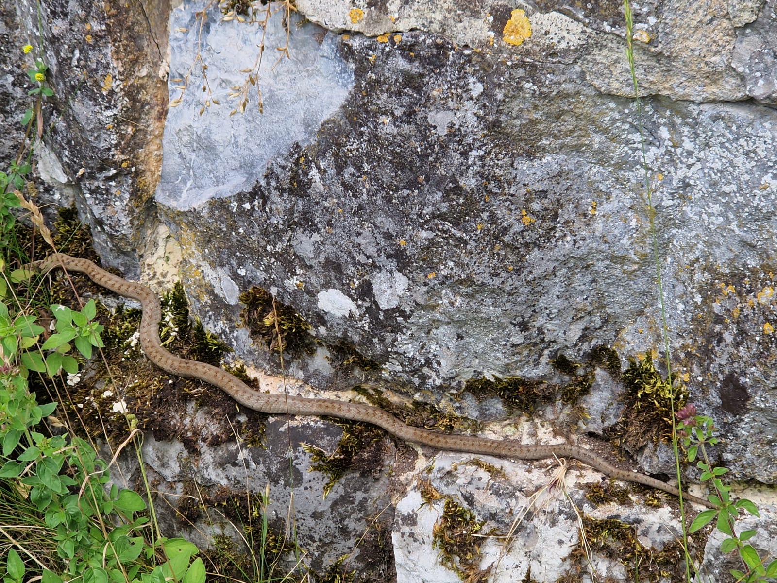Durant le mois de juillet, la faune fut variée. Les rencontres furent riches en émotions. Ainsi, les visiteurs et les bénévoles venant ouvrir le site sont tombés nez à nez avec … une fouine, une coronelle lisse (Coronella austriaca), des papillons blancs tachetés de points noirs (une variété méditerranéenne?), des lézards et un … un raton laveur ! Les agents du DNF ont géré tout ce petit monde du mieux possible. Une cage a été installée pour relâcher les animaux indigènes en des endroits plus adéquats pour eux et pour les visiteurs du Patrimoine exceptionnel que sont les ruines de Méraude. Les animaux appartenant à espèce exotique envahissante, sont détruits.