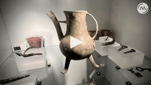 La MPMM accueille dans ses vitrines l’une des plus intéressantes découvertes faites lors des fouilles réalisées en 2022 lors du chômage de la Meuse : une aiguière en laiton mosan du XVe s. Une aiguière est une pièce de service à boire. C’est un récipient ovoïde à pieds, destiné à contenir de l’eau et à servir à table. C’est MaTélé qui a réalisé le reportage. Provient-elle de Dinant ou de Bouvignes ayant été entrainée par le courant dur fleuve ? A-t-elle été jetée de Poilvache ? A-t-elle été jetée par un habitant de Houx ? La pièce restera certainement mystérieuse sur quelques aspects de son histoire …