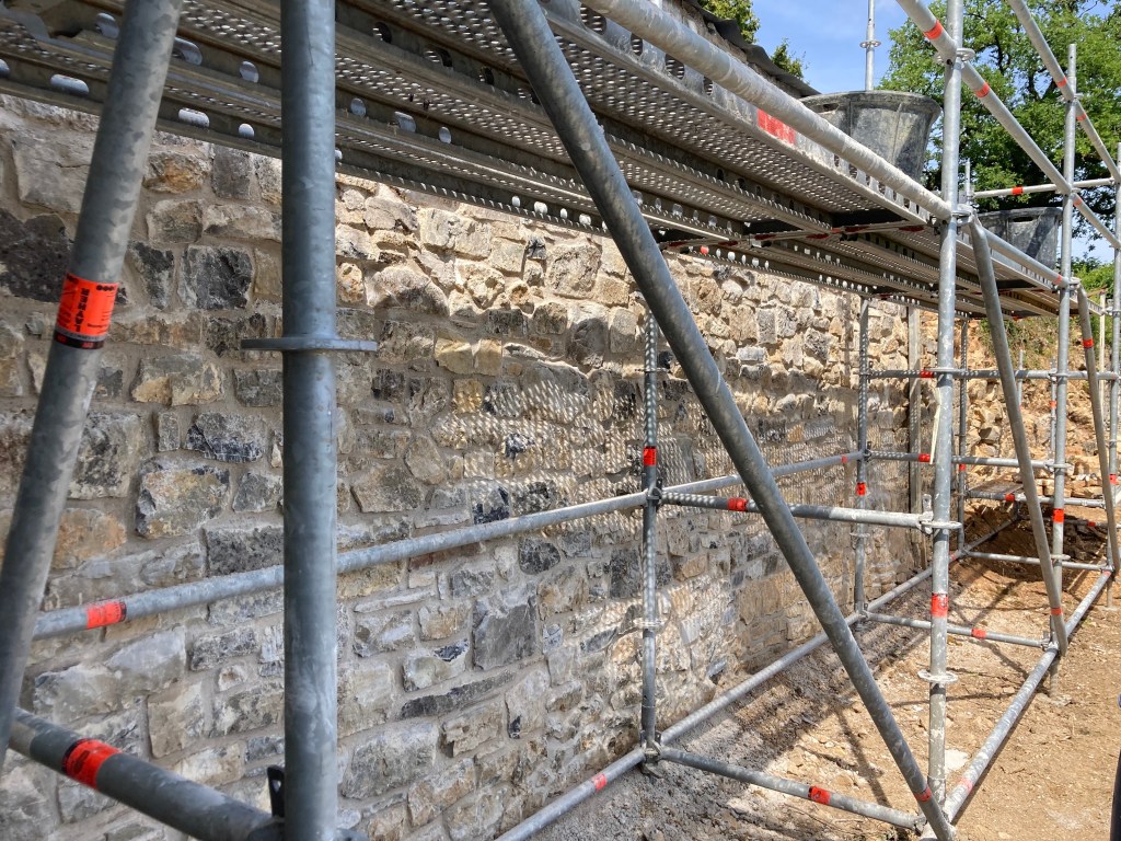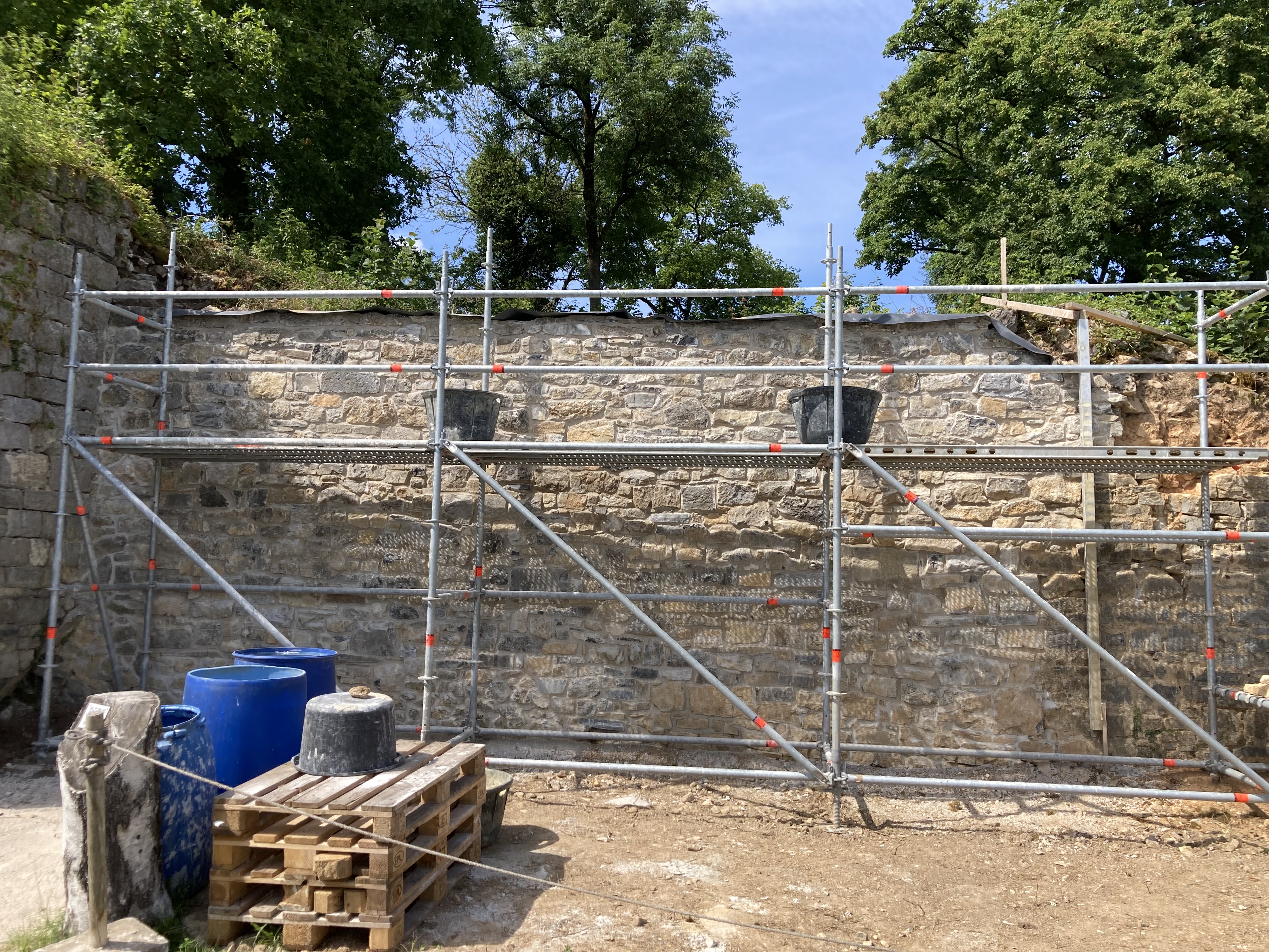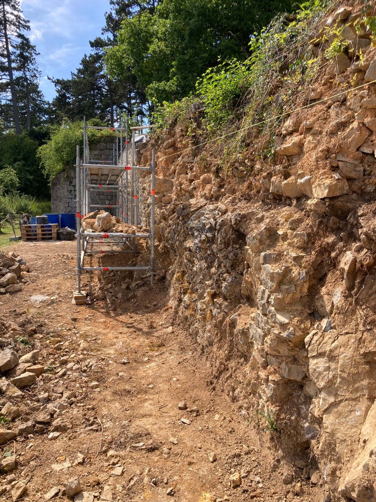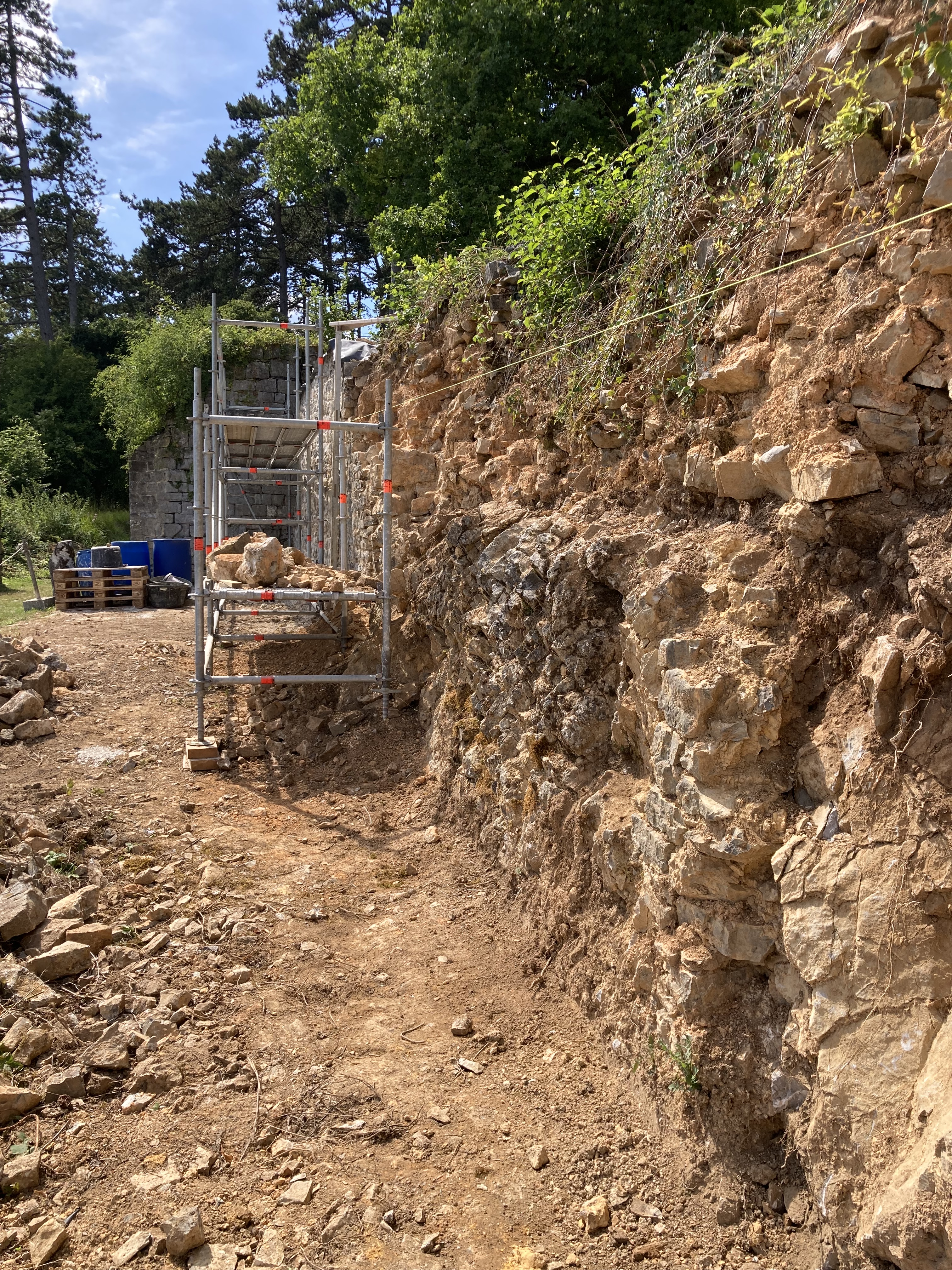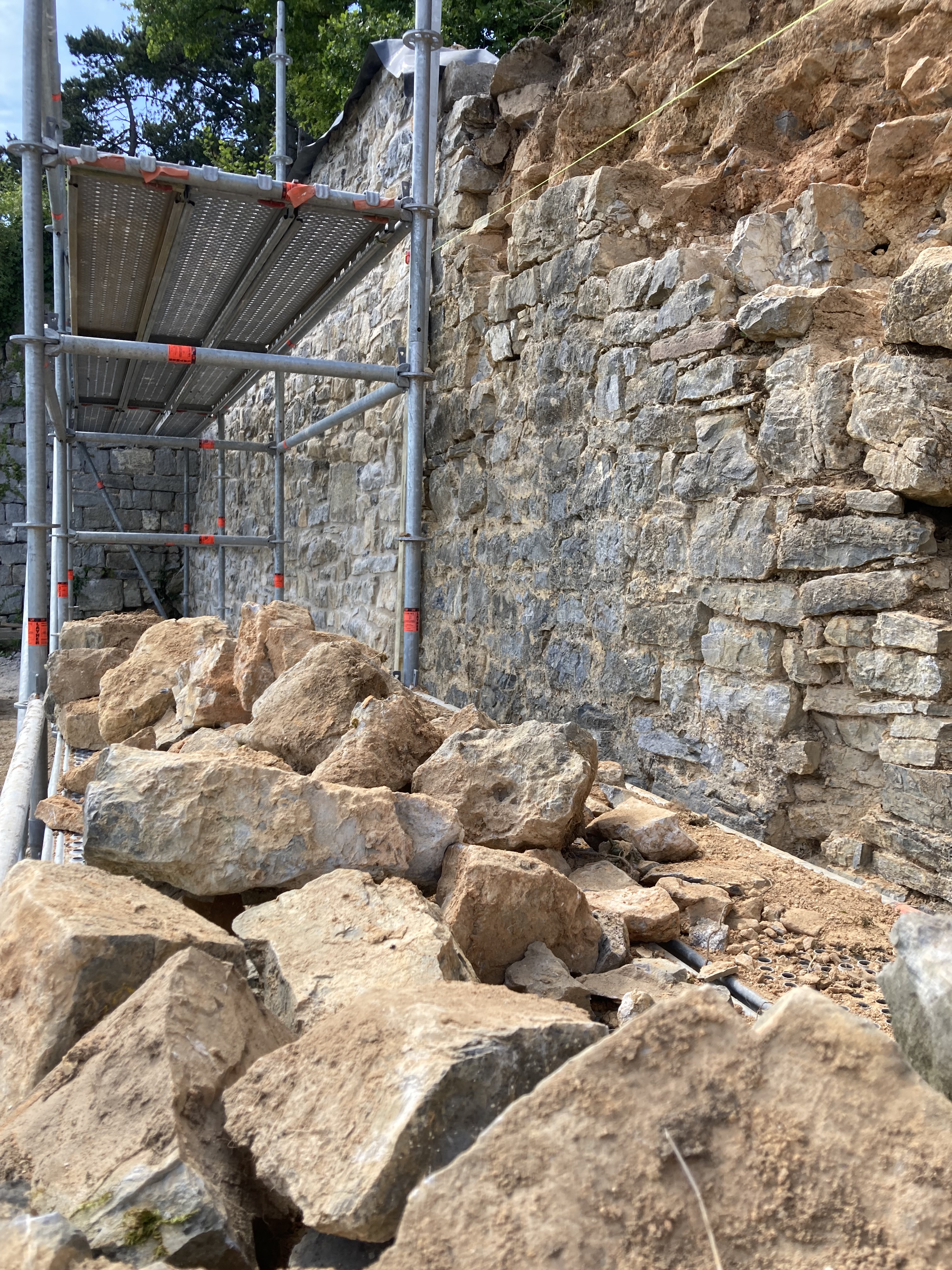 Et voici la restauration du mur du chemin de défilement en pause durant ce mois de juillet. Quelques photo exposant la situation :