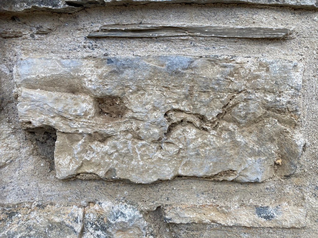 Et dans les murs, fossiles en sommeil,