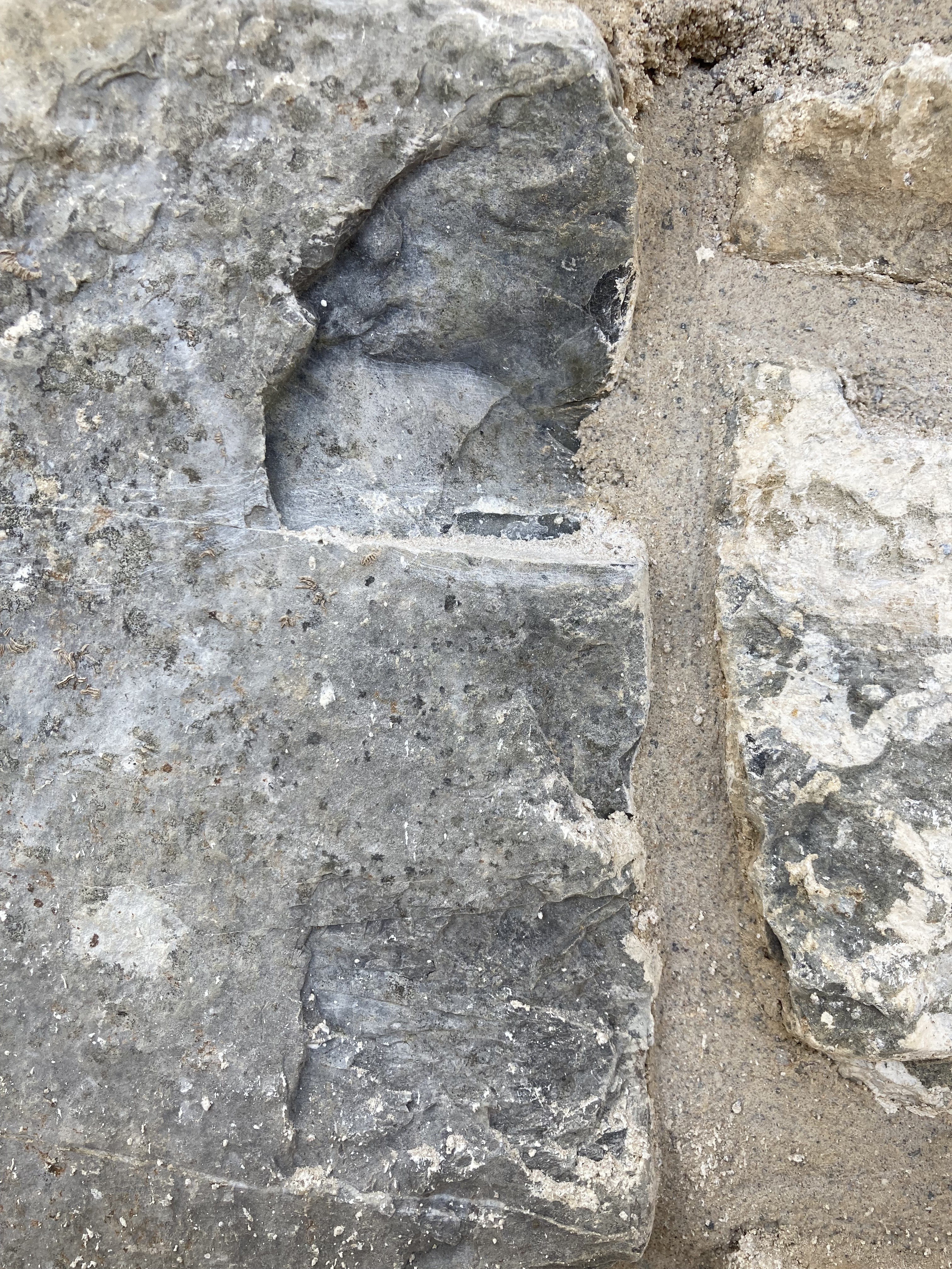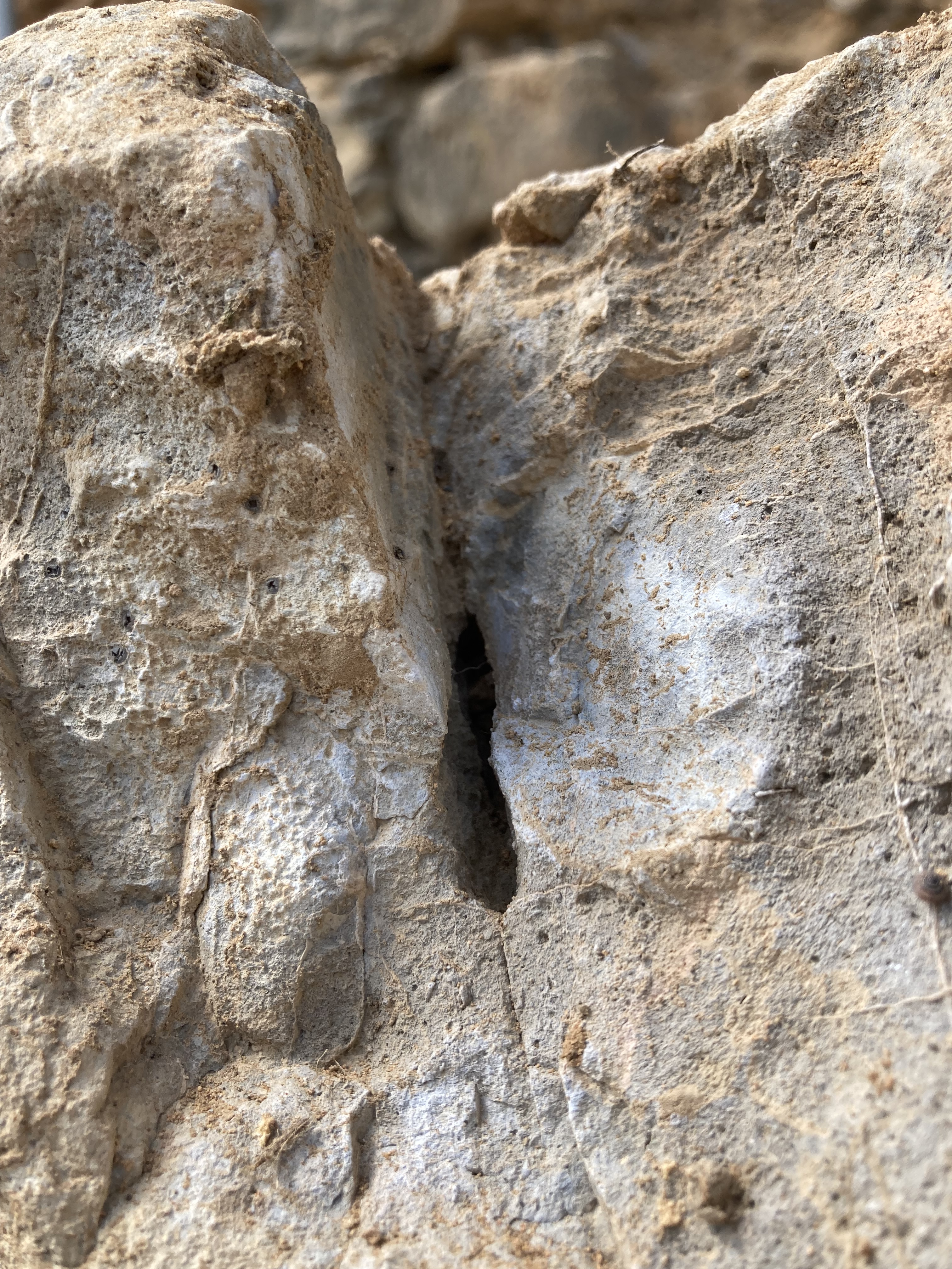 Parmi les dalles fendues, des concrétions naissent,