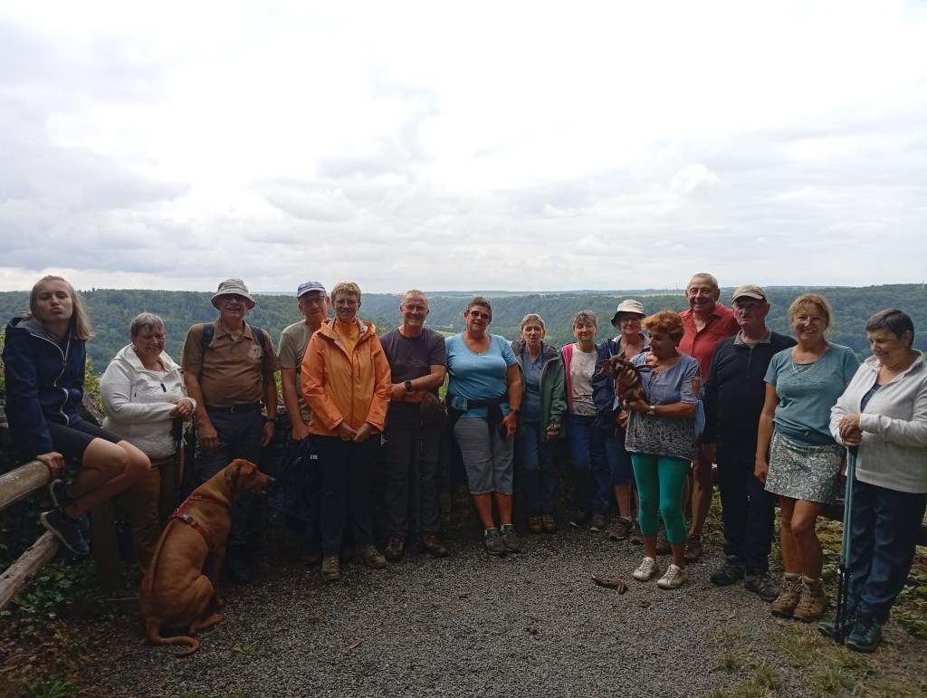 Madame Françoise Delchambre a mené son groupe avec bonne humeur. Une partie du groupe a visité le site. Elle vient avec le club de marche deux fois par an à Poilvache.