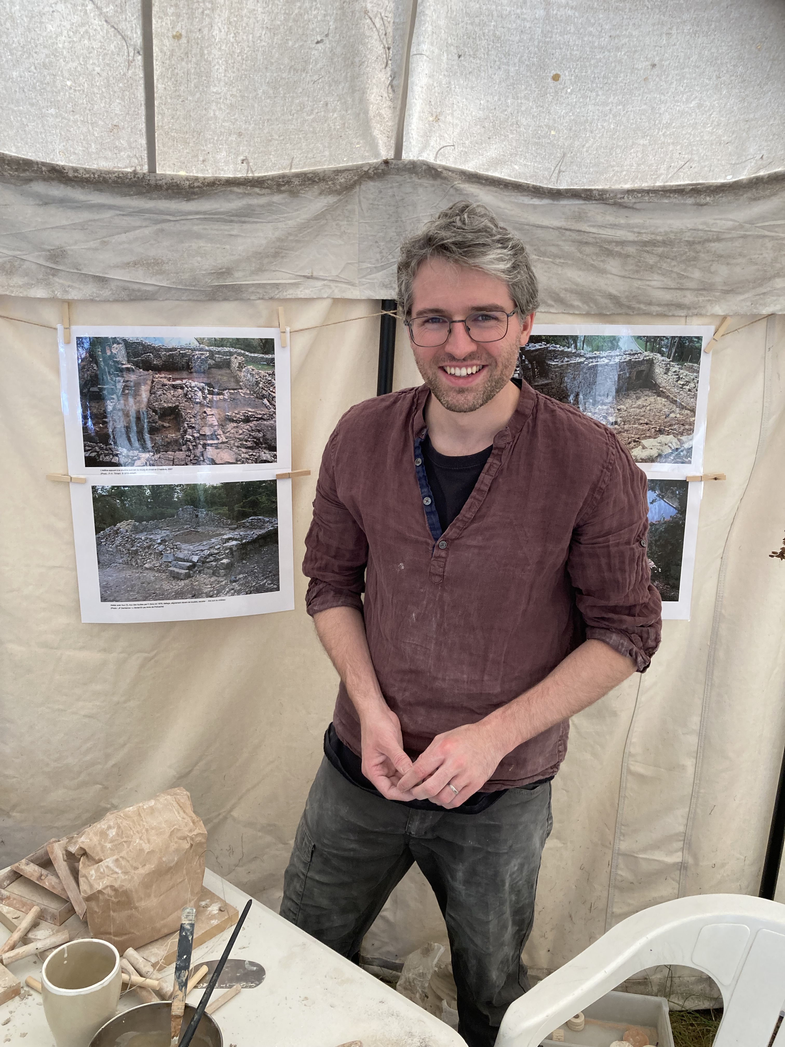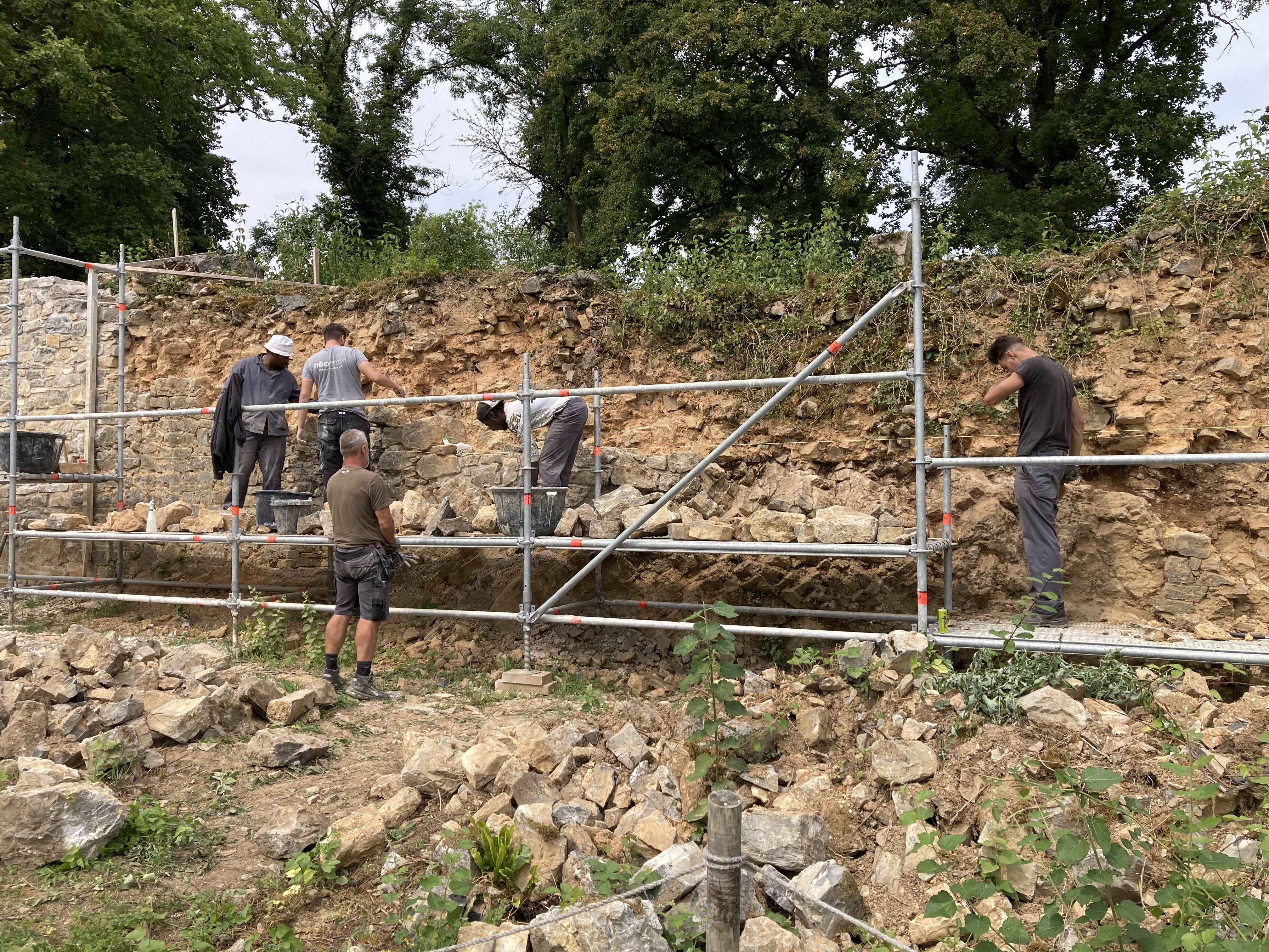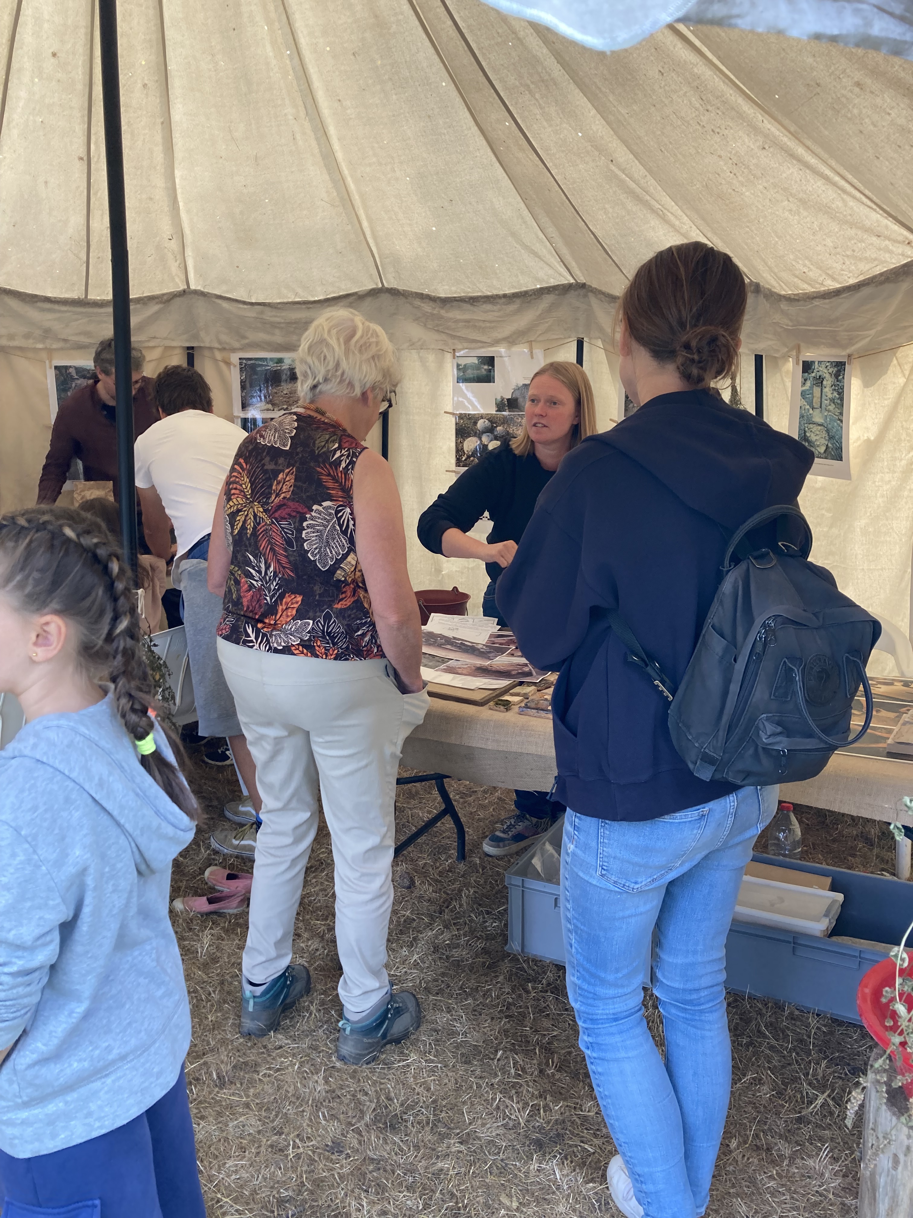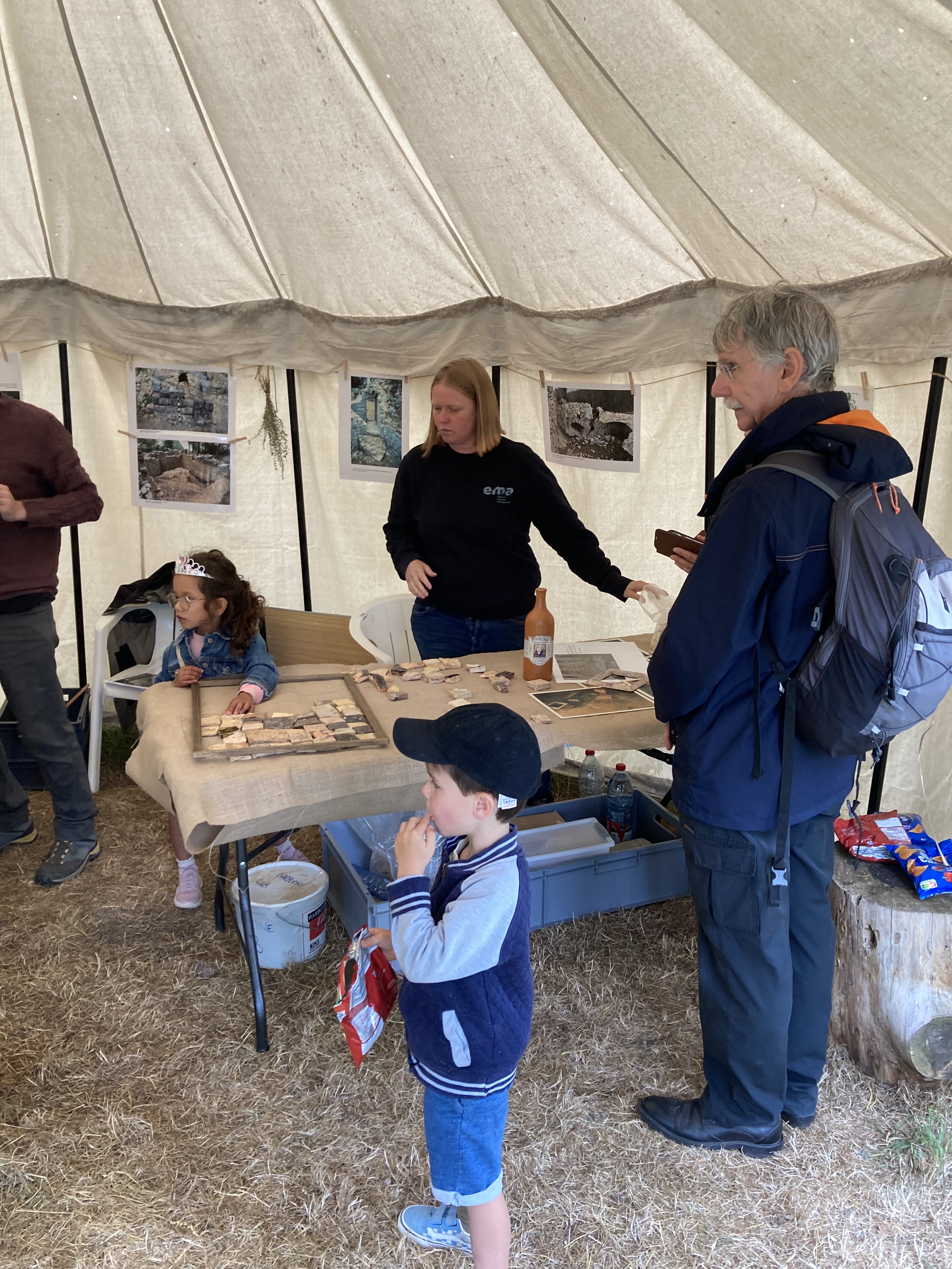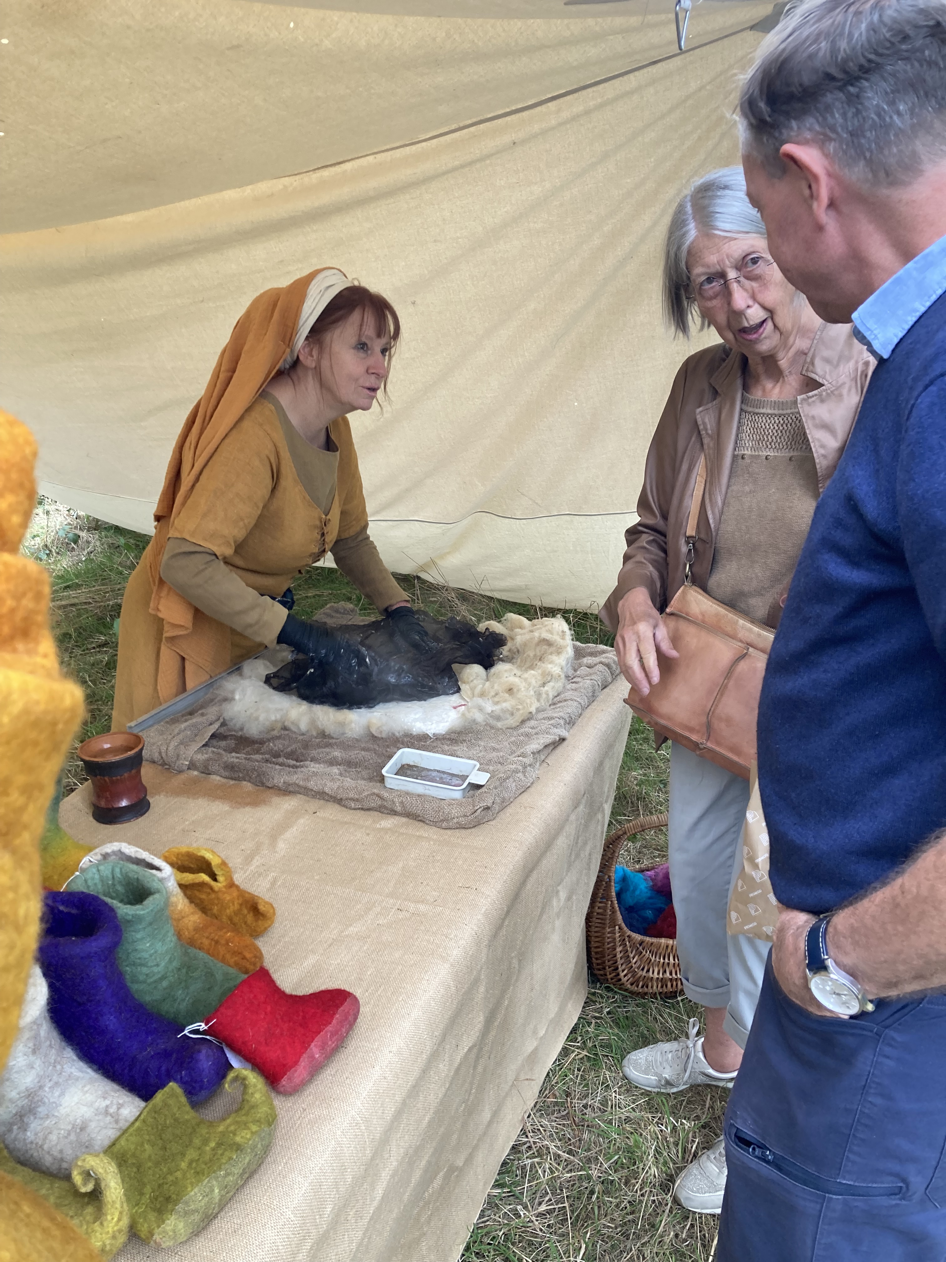 Que de monde devant la grille vers 8h30-9h ce matin : les Francs Compaings pour s’installer dans leur bivouac, l’Espace Muséal d’Andenne pour animer les carrelages en terre cuite, Joelle et son matériel de feutrage, le DNF venu faucher, le Forem pour restaurer le mur du chemin de défilement … et nous même pour les animations complémentaires !