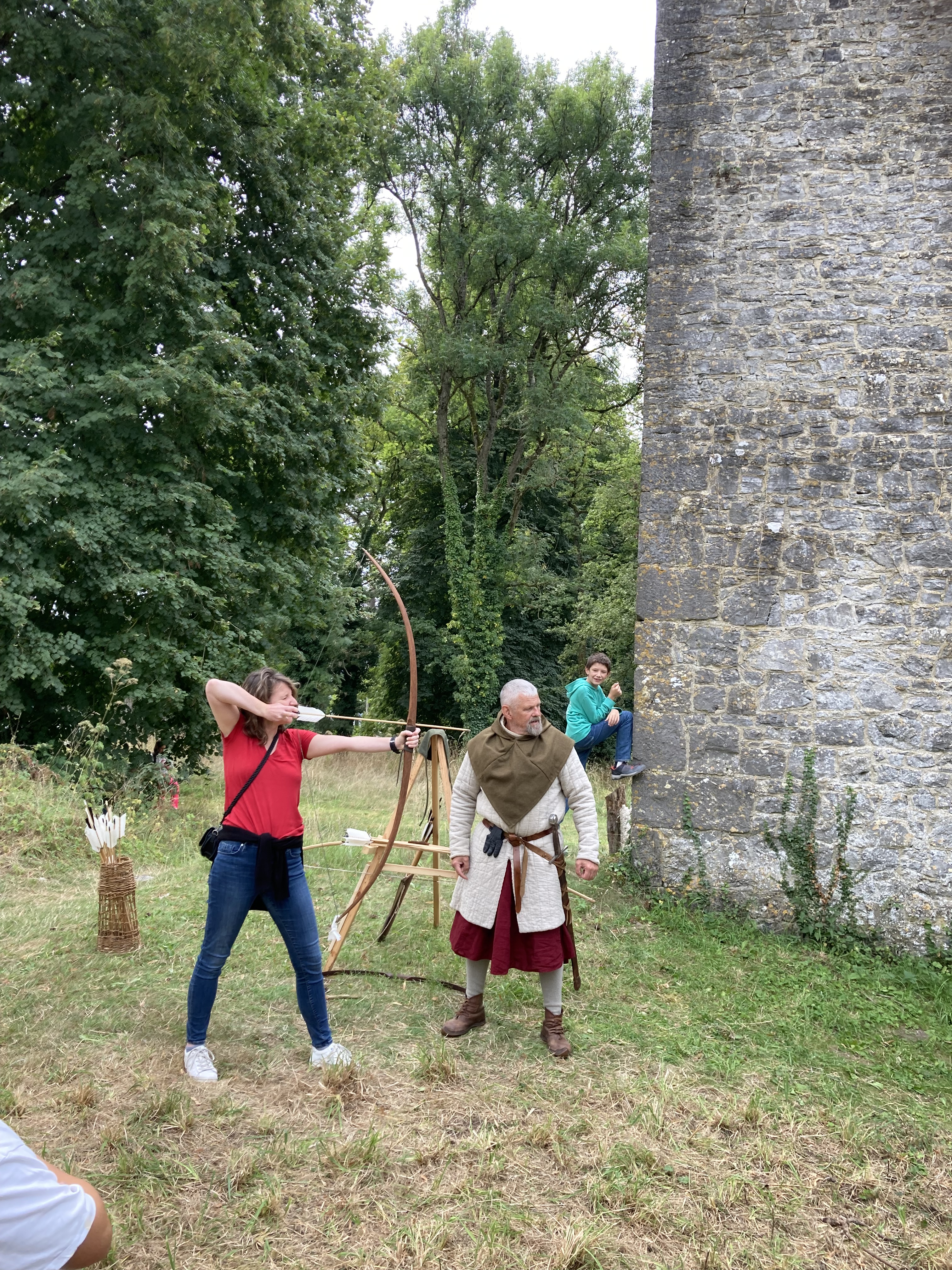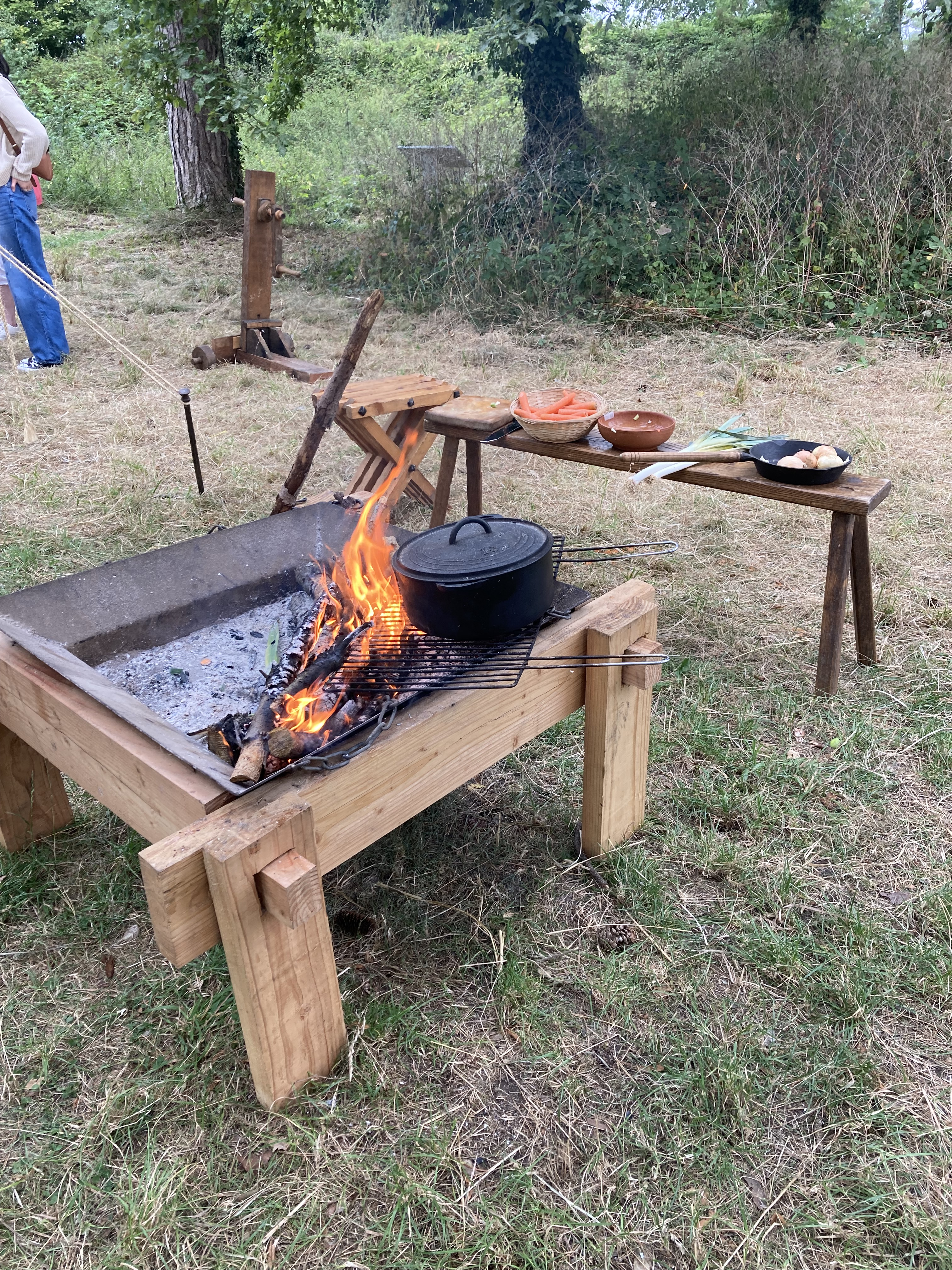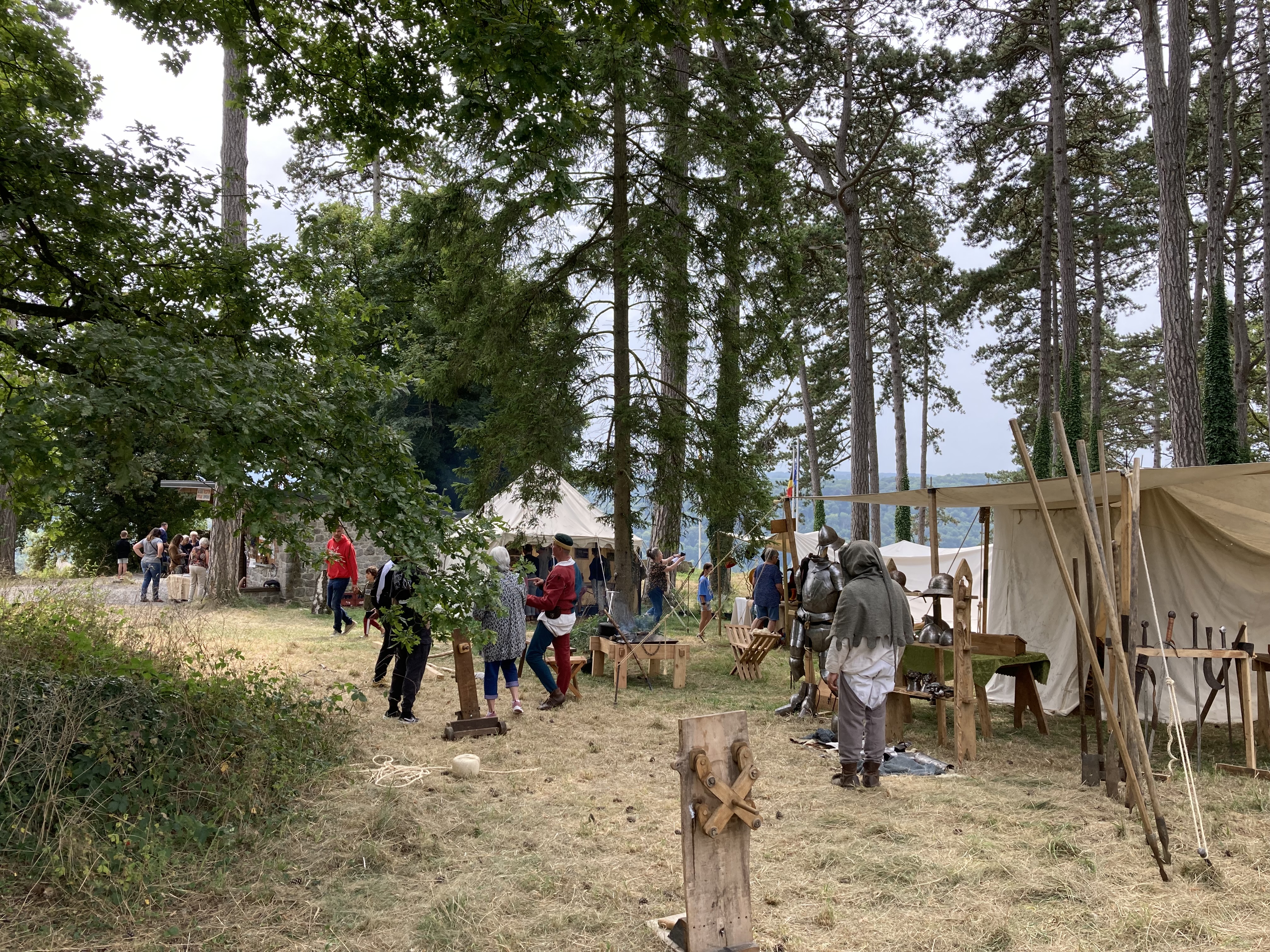 Un petit feu de bois dans un baquet surélevé protégeant très correctement la pelouse de la RND accueillait les visiteurs dans la zone animée entre le pavillon et la Grand Pignon. Dans le bivouac, des cordes ont été tressées, des flèches tirées, des armes entrechoquées, des armures soupesées et enfilées, son adresse et son équilibres mesurés … et j’en oublie certainement car les animations se déroulaient au gré des demandes.