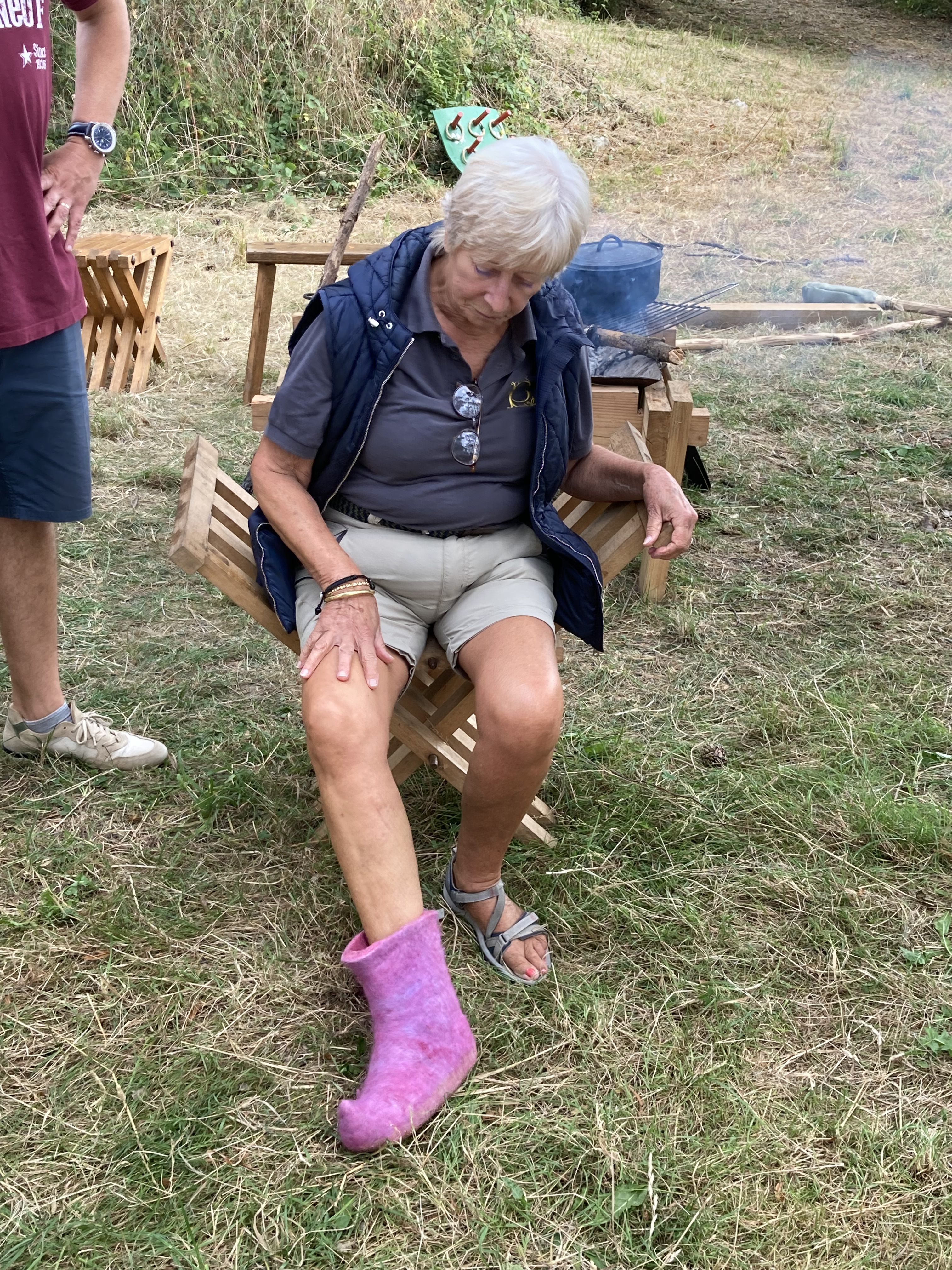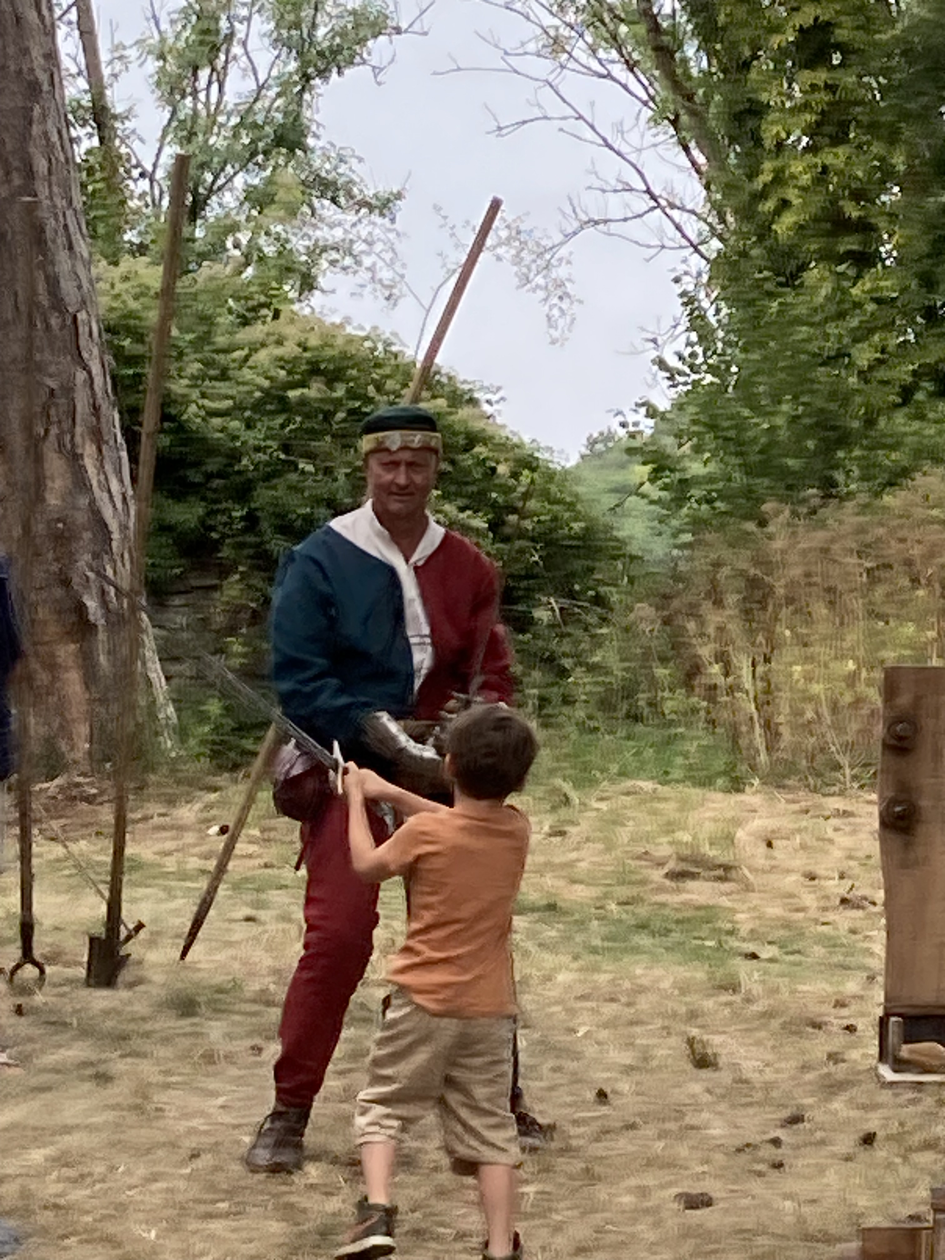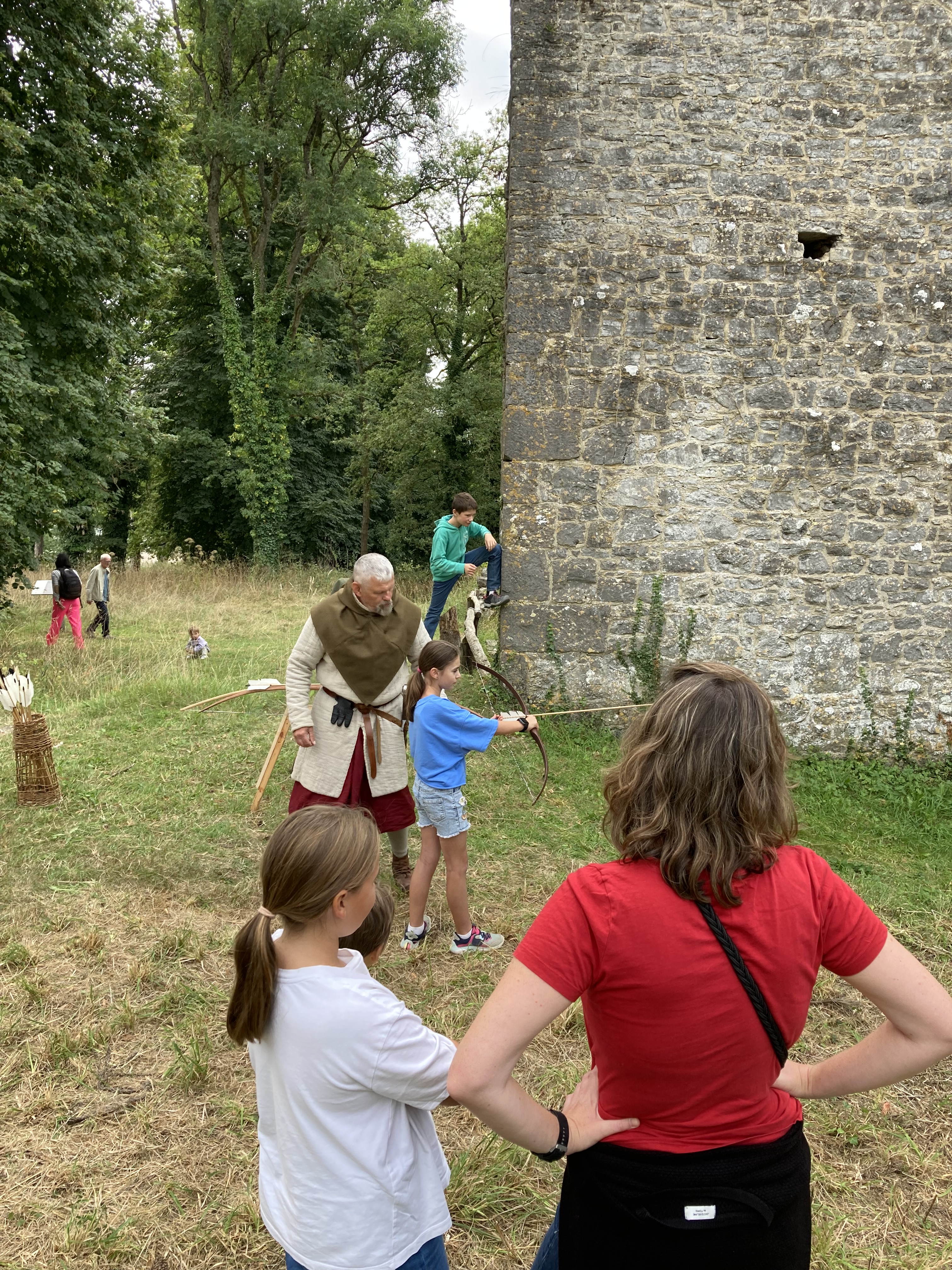 Un petit feu de bois dans un baquet surélevé protégeant très correctement la pelouse de la RND accueillait les visiteurs dans la zone animée entre le pavillon et la Grand Pignon. Dans le bivouac, des cordes ont été tressées, des flèches tirées, des armes entrechoquées, des armures soupesées et enfilées, son adresse et son équilibres mesurés … et j’en oublie certainement car les animations se déroulaient au gré des demandes.