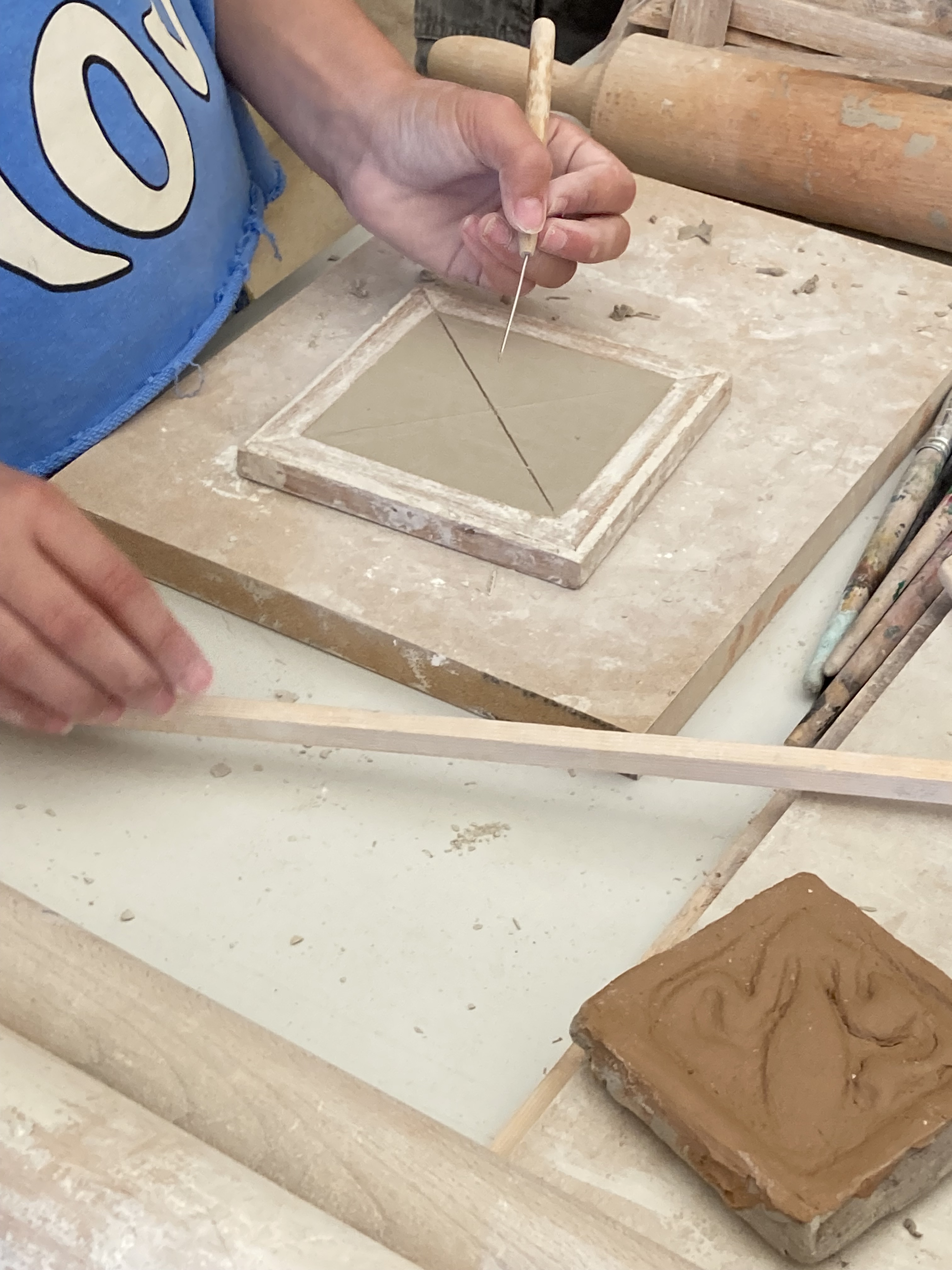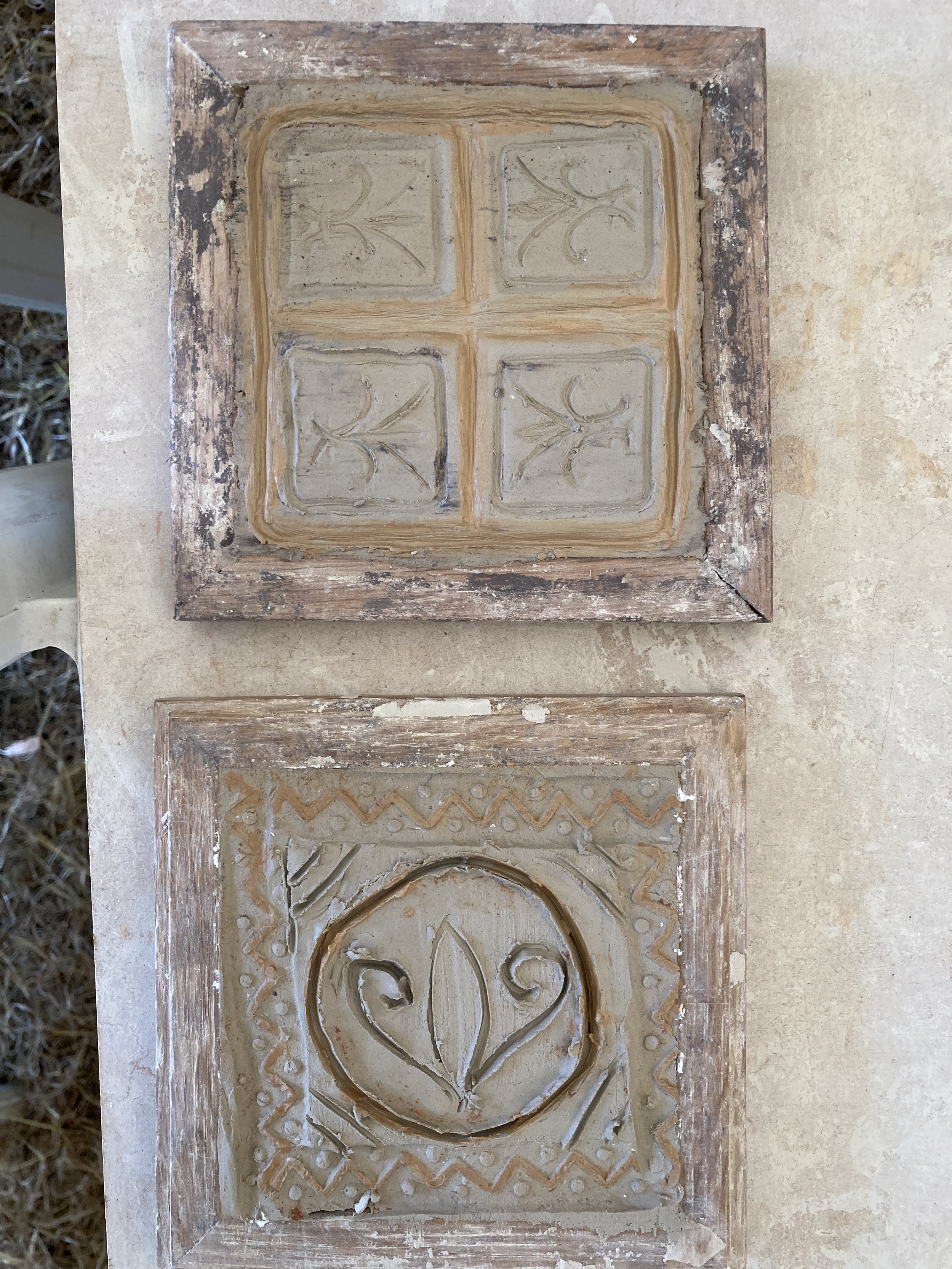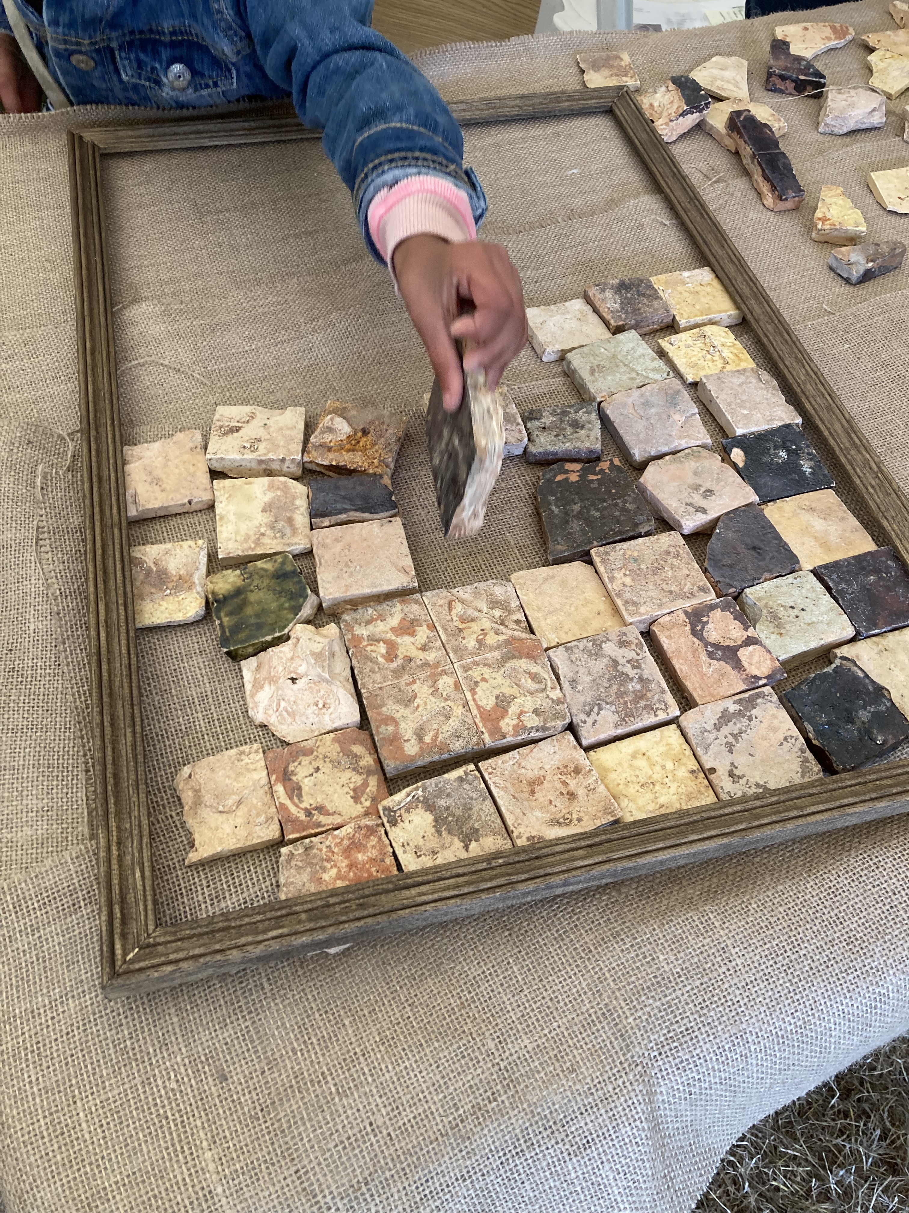 L’EMA a traversé le Condroz pour venir expliquer le « qui-que-quoi-dont-où-par qui-pourquoi et comment » de ces carrelages en terre cuite dont ils ont retrouvé exceptionnellement un four et une zone de rebuts dans leur secteur andennais. Après donc un minimum d’explications, les visiteurs, jeunes et moins jeunes, ont pu se tester à créer un carrelage en façonnant un carré dans un moule ou en s’essayant à la composition d’un pavement dans un cadre.