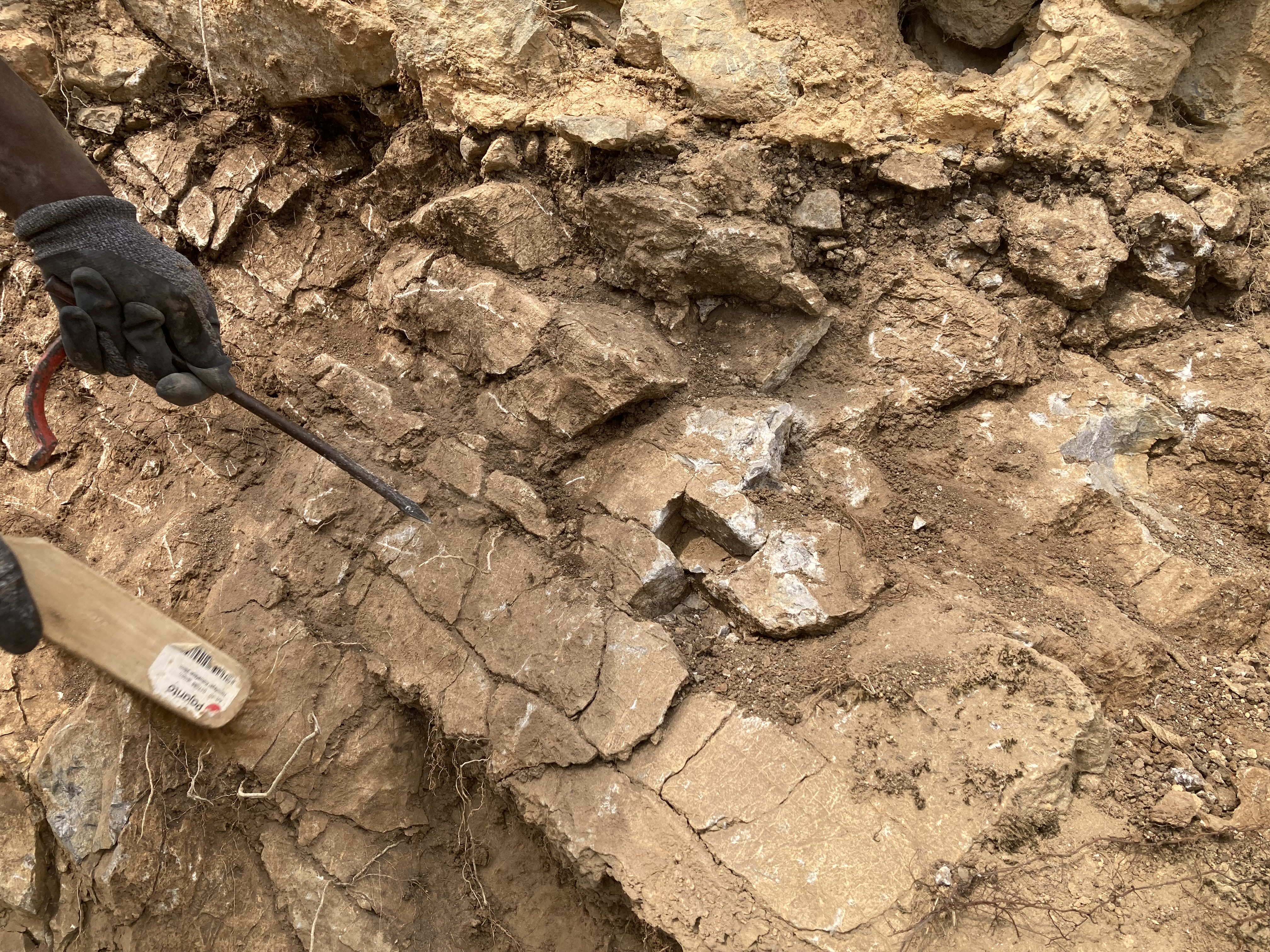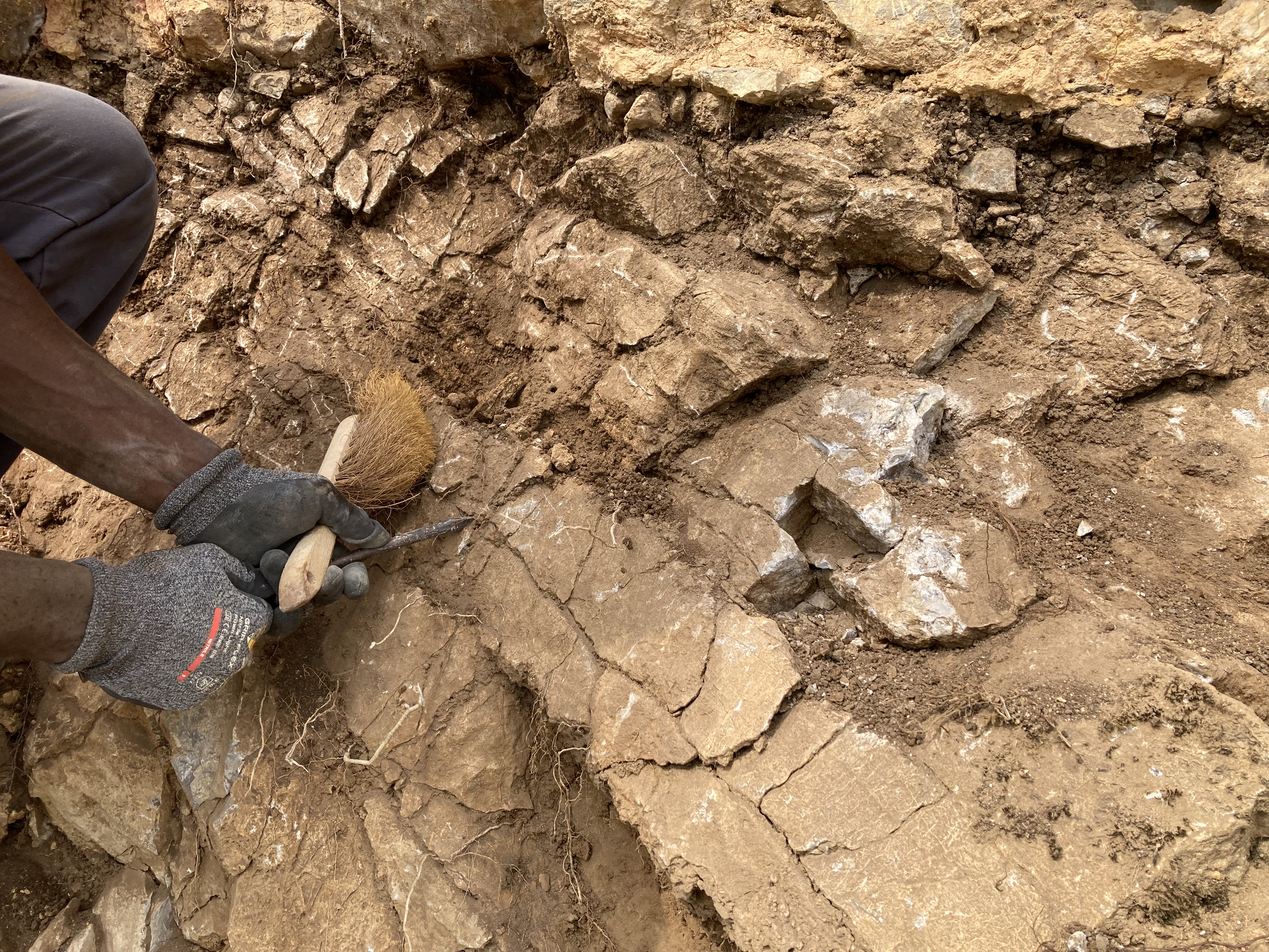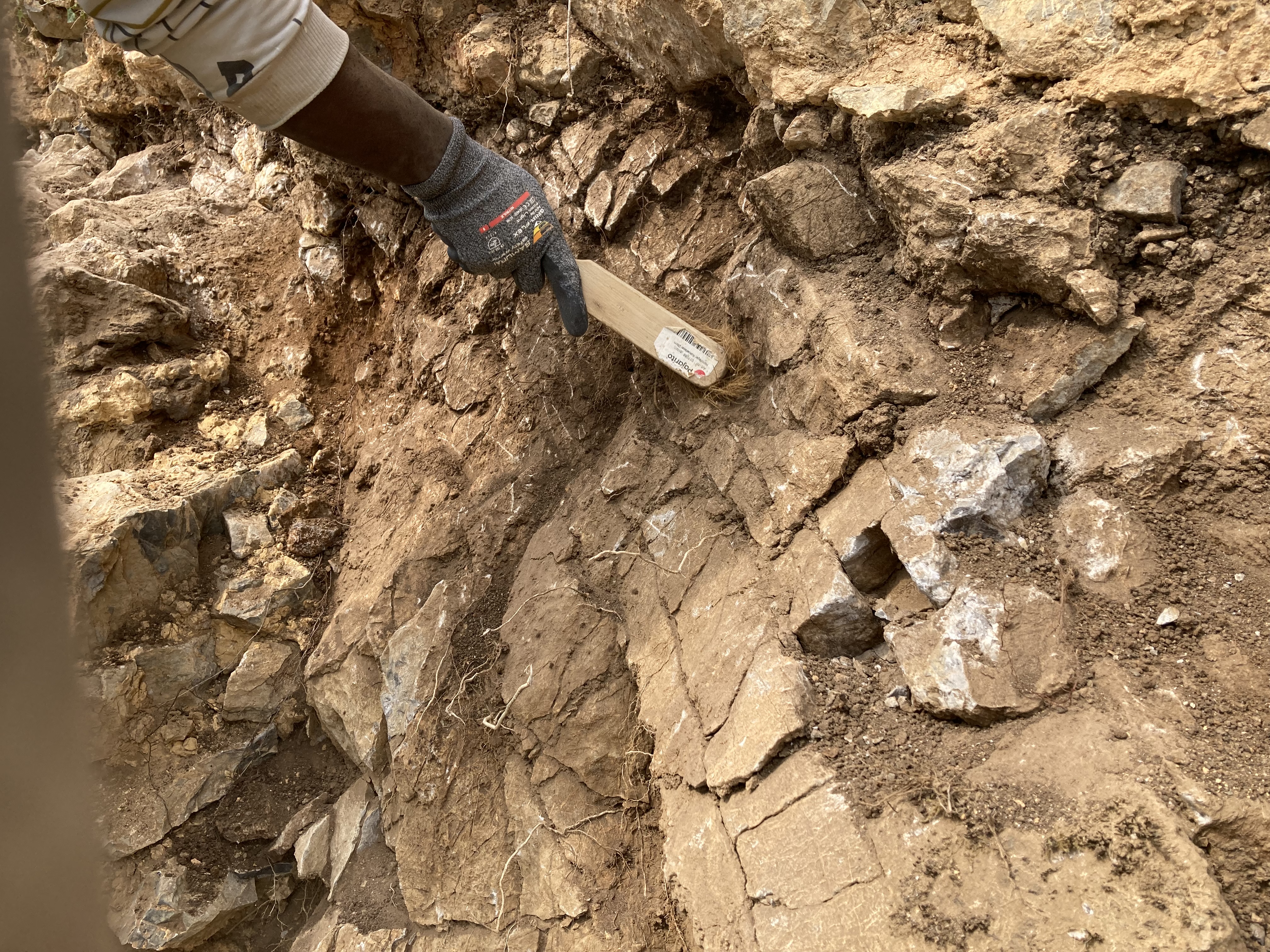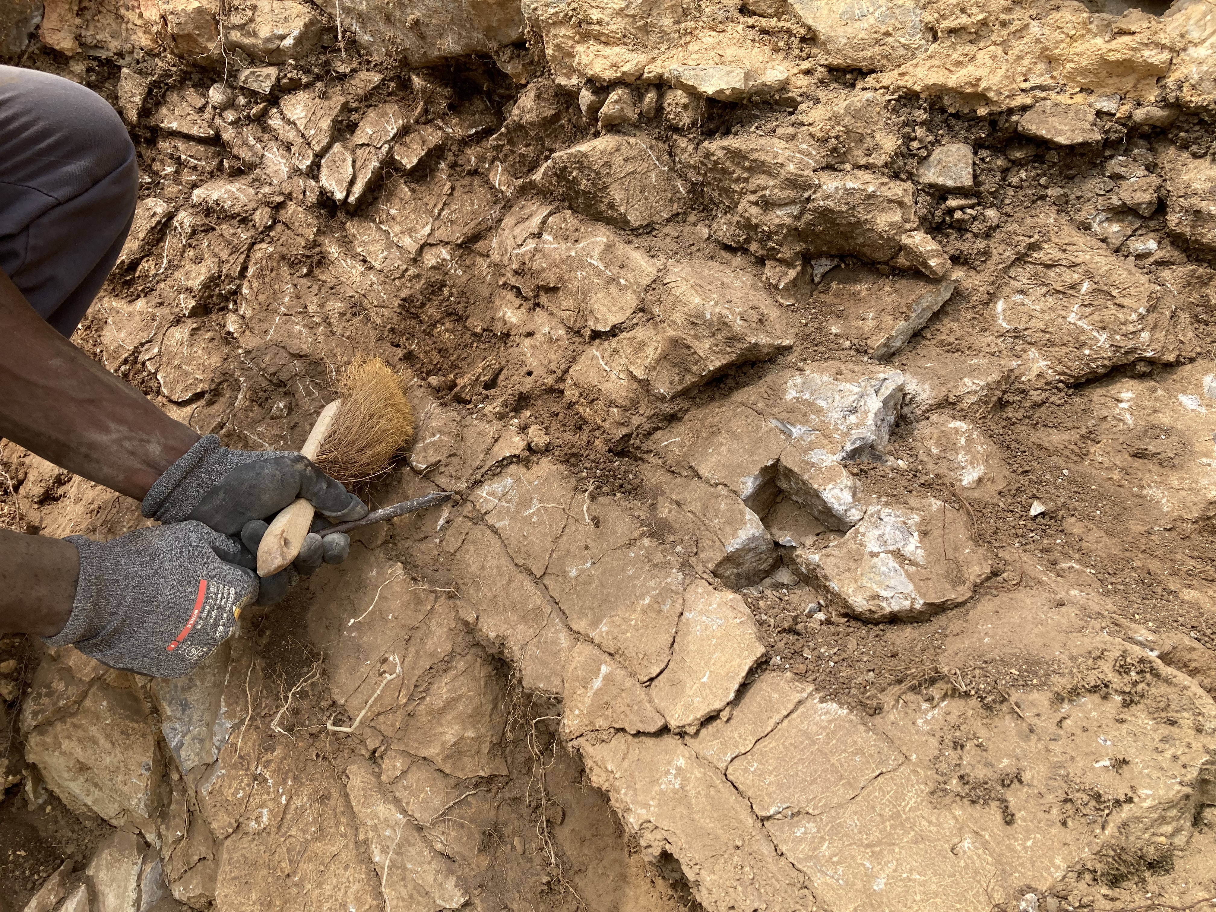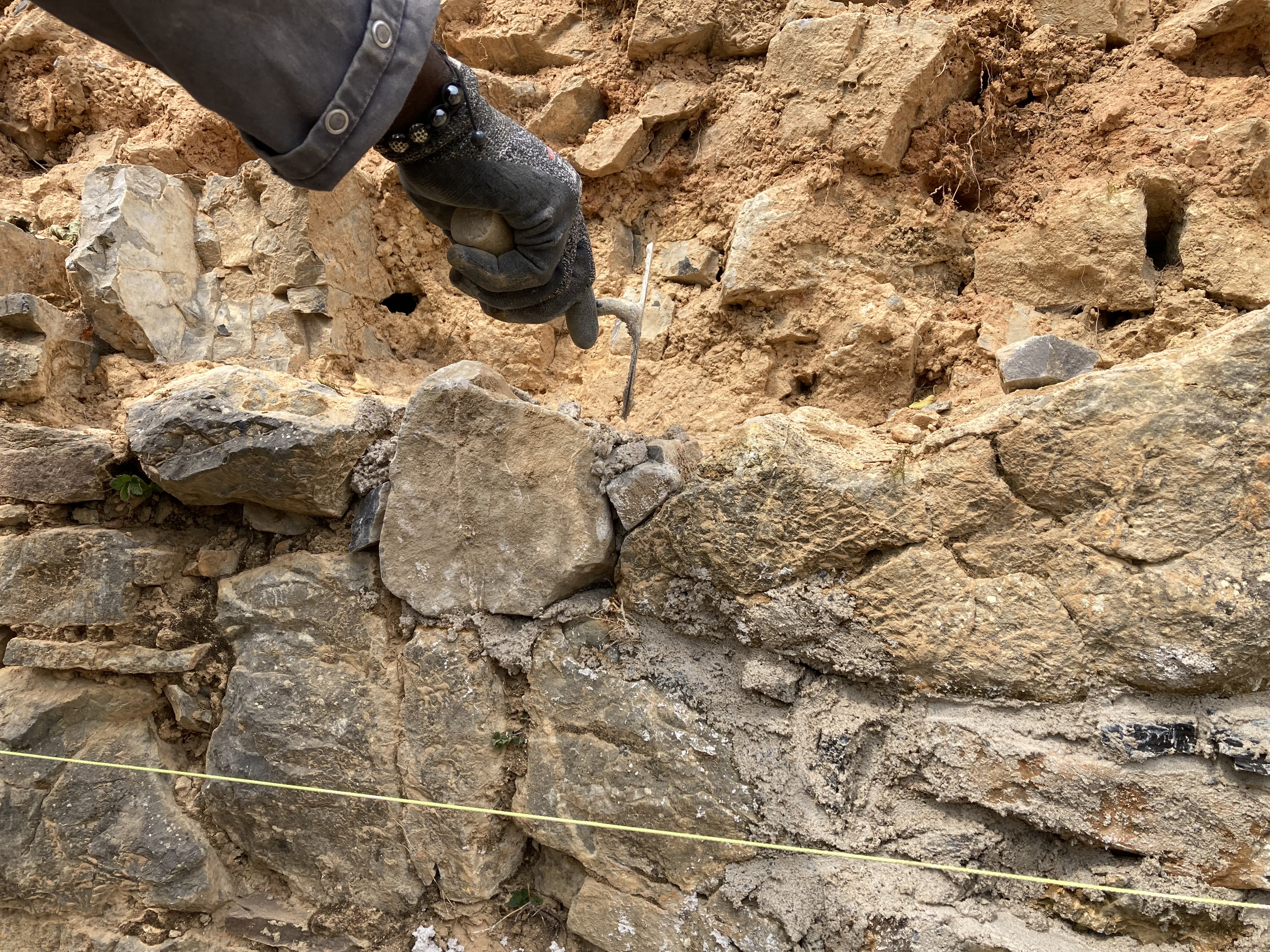 En éliminant les tas de moellons à disposition, en nettoyant le mur et en dégageant le sommet des végétaux, l’équipe a retrouvé quelques objets archéologiques. Vous en saurez plus dans un prochain article.
