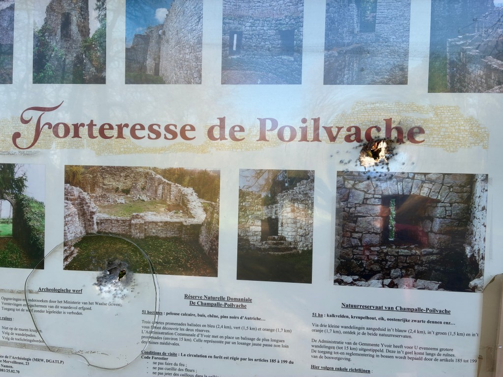 This panel does not belong to the non-profit organization Les Amis de Poilvache, but rather to the DNF (Department of Nature and Forests), which had already noticed this damage during its daily patrols. We contacted them several months ago. As you know, administrative procedures can sometimes be lengthy and take circuitous routes. We therefore hope that the panel will be replaced before the next hunting season, which is currently scheduled for what we still call… winter 2026-2027.