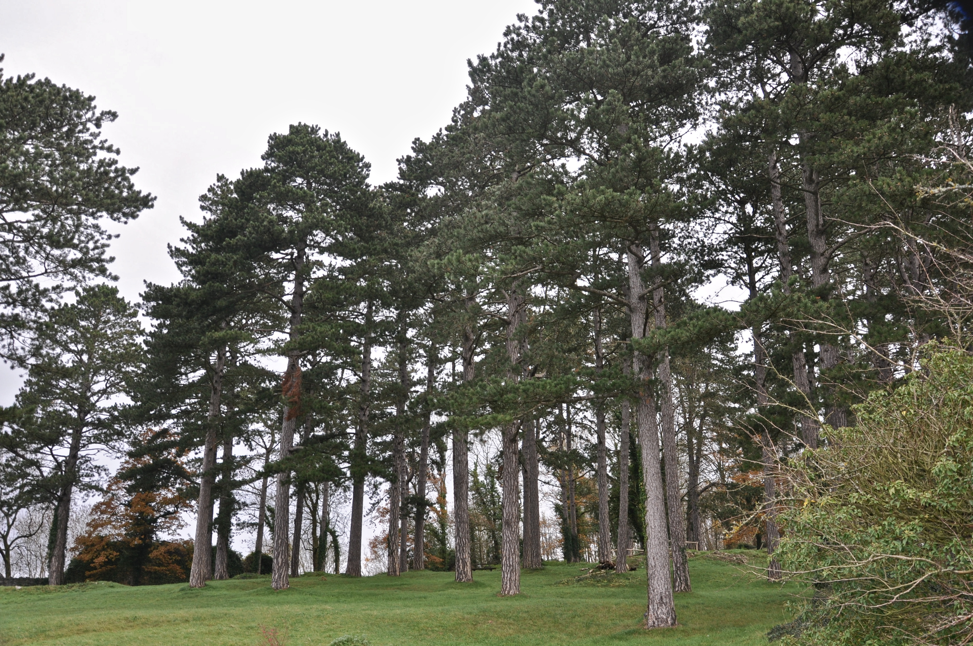 Ce qui frappe le plus en pénétrant dans le site, ou en l’admirant de loin, ce sont les grand Pins Noirs d’Autriche peuplant l’intérieur des ruines. Ces conifères, non indigènes, ont été plantés vers 1875. Le pin noir est une essence forestière particulièrement bien adaptée aux sols calcaires secs et superficiels, mais fissurés. Les parties ombragées des ruines et des fossés abritent des fragments d’érablière riches en actées en épi.