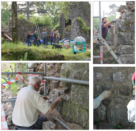 Depuis 1999, l’Institut du Patrimoine wallon dirige un centre des métiers du patrimoine dont l’objectif est d’assurer la transmission des savoir-faire en matière de patrimoine architectural. Les stages de perfectionnement organisés dans ce cadre s’adressent aux professionnels du secteur de la construction mais également aux privés soucieux des techniques anciennes de restauration. Un outil magnifique dont la Maison du patrimoine médiéval mosan a l’idée de profiter, dès la fin de l’année 2011, en proposant l’organisation d’un stage de « Maçonnerie de moellons », sous la direction de J. de Pierpont, sur le site de Poilvache. Ce projet s’insère directement dans les missions de la MPMM relatives à l’entretien et à la valorisation des châteaux, propriétés régionales initiées au sein de diverses activités.