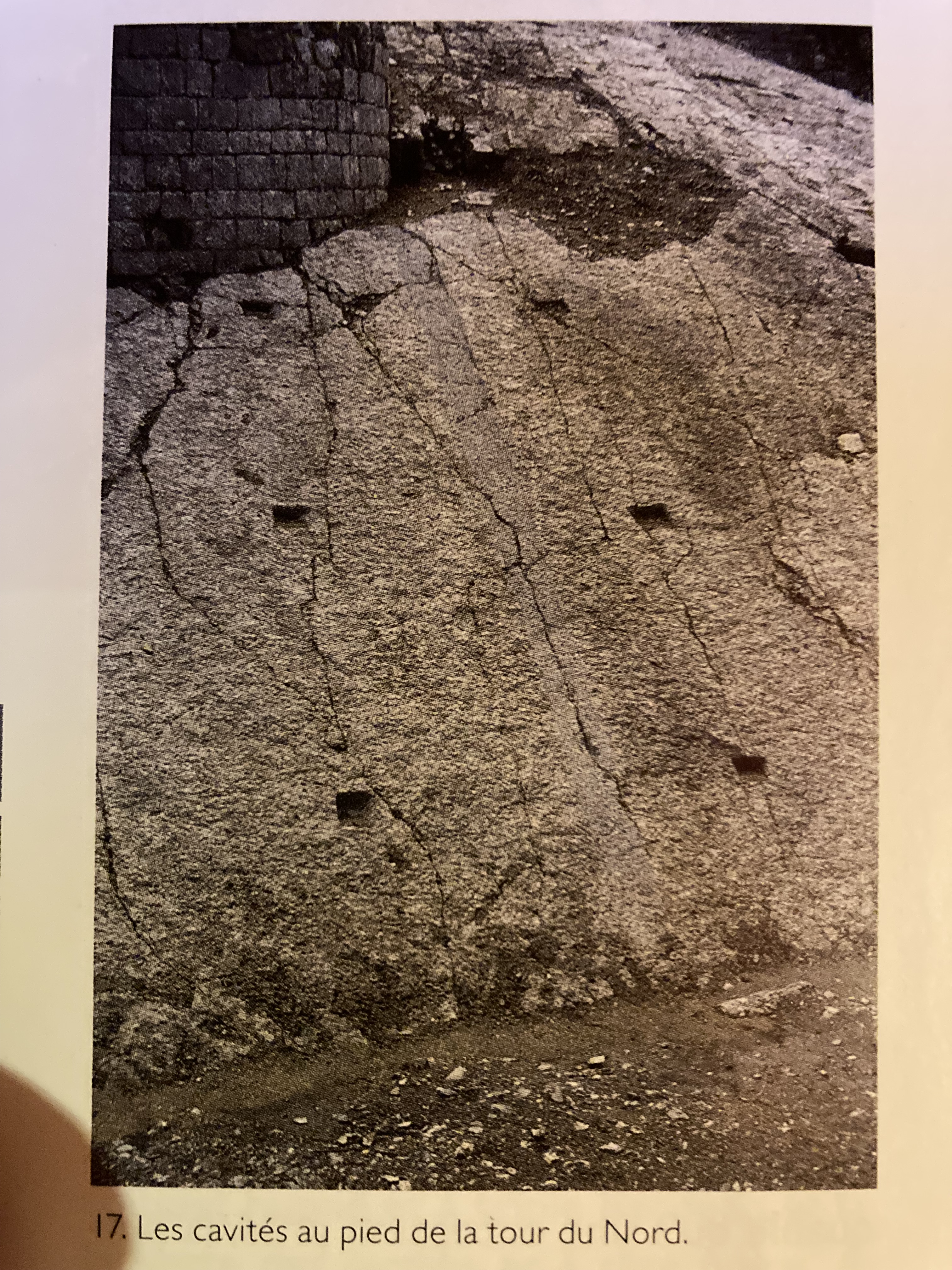 une curiosité : 6 cavités symétriques creusées dans le rocher pour y planter les supports d’échafaudage ?