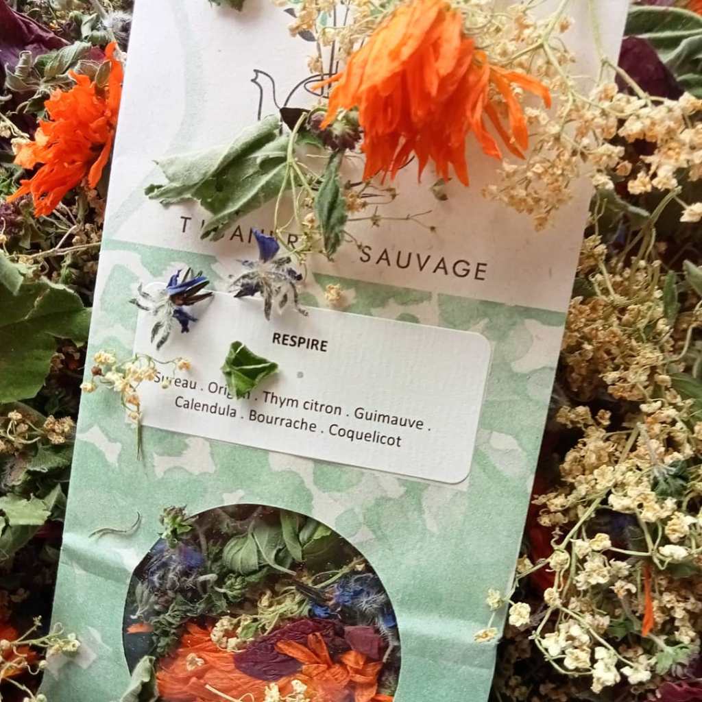 Séverine est tisanière dans la région du Condroz. On dit souvent qu’on mange avec les yeux. Il faudra dorénavant ajouter : On boit aussi avec les yeux ! Séverine aime proposer des tisanes qui soient jolies, colorées, savoureuses et bienfaisantes. Elle compose les mélanges de tisanes en assemblant des plantes qui se rejoignent tant au niveau de leurs vertus que de leur goût. Le champ de la tisanière est situé à Bonsin (dans la commune de Somme-Leuze). Y poussent pas moins de vingts plantes différentes comme la Mauve, l’Agastache, le Thym, la Menthe, le Calendula, le Fenouil, la Mélisse, la Camomille Matricaire, la Verveine Citronnée, la Sauge, le Bleuet, la Bourrache, etc. D’autres plantes sauvages sont aussi cueillies en pleine nature (Ortie, Sureau, Aubépine, Noisetier, Coquelicot, etc.). L’atelier/séchoir à plantes est installé dans le joli village de Chardeneux (Bonsin). Feuilles d’Herbe est un subtil mélange de fleurs, de feuilles et d’herbes, de nature sauvage et de poésie… » Très bonnes dégustations à tous !
